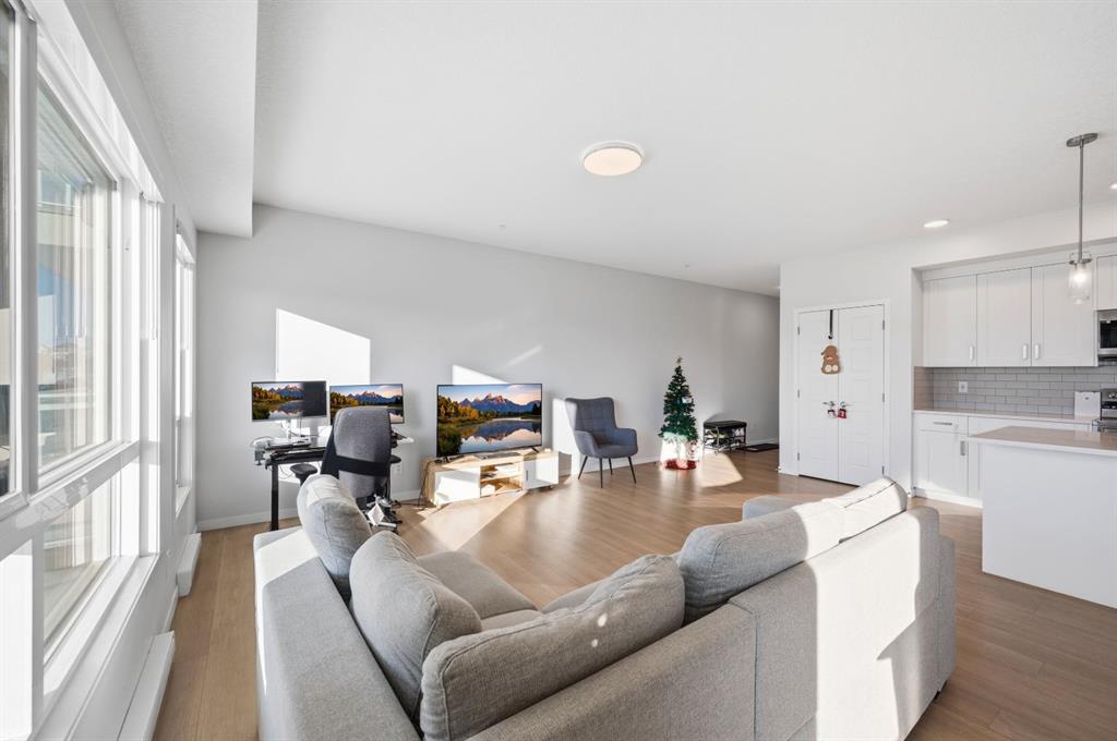 Welcome to this beautifully designed 2-bedroom, 2-bathroom corner unit condo offering 1,101 sq ft of modern living space in the highly sought-after Seton Summit. Featuring an open-concept floor plan with soaring high ceilings, this bright and spacious unit is perfect for both everyday living and entertaining. The contemporary kitchen is finished with quartz countertops, ample cabinetry, and seamlessly flows into the living and dining areas. Step outside to your private balcony, ideal for enjoying morning coffee or evening relaxation. The thoughtfully laid-out bedrooms provide privacy and comfort, including a generous primary suite with a full ensuite. Additional highlights include titled underground parking, in-suite laundry, and modern finishes throughout. Located in the vibrant community of Seton, you’re just steps away from shopping, dining, the South Health Campus, YMCA, and excellent access to major roadways. This home offers the perfect blend of style, convenience, and lifestyle—don’t miss it!