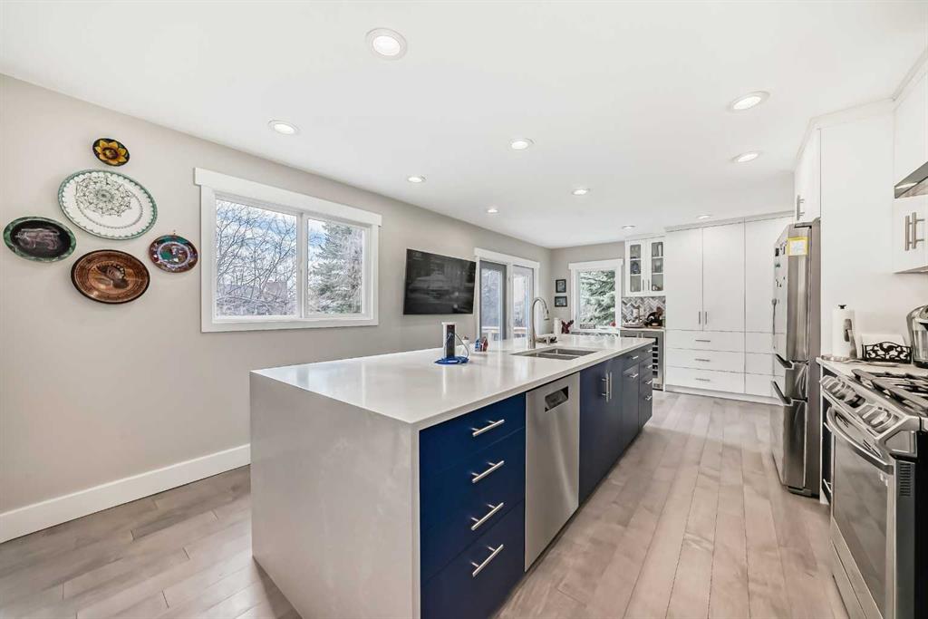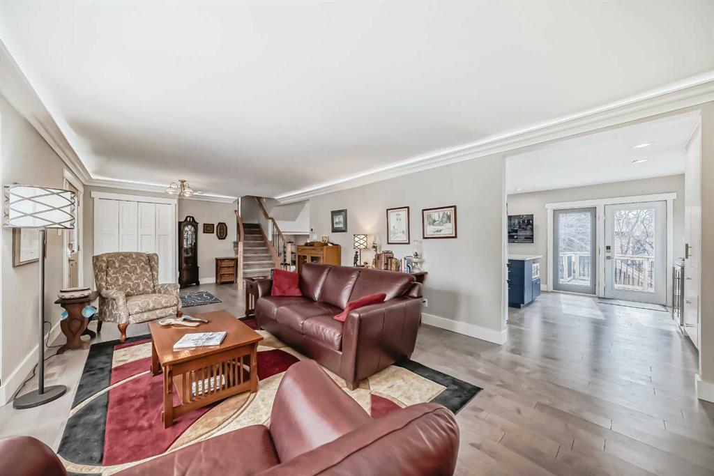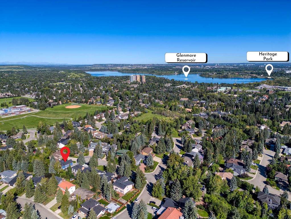 Rarely available in this prestigious location! Come home to your unique 2 storey split home located on a huge pie lot, nearly a quarter acre with a south-southwest backyard, nestled in a quiet cul-de-sac! Enjoy the tranquility, peaceful and park-like yard with mature trees and space to play or relax near the patio stone fire pit. Multi year renovation, with all permits in place, includes upgraded windows, smart home system, smooth ceilings throughout 3,400+ square feet of finished space, a truly stunning transformation. Enter into the main level showcasing engineered hardwood, adjacent living room with back lit crown mouldings and a raw edge, custom milled fireplace mantel complimenting the remote controlled gas fire. The expansive kitchen boasts an impressive 11\' quartz island with waterfall edge, sink with touch sensor faucet, and hidden USB, electrical outlets and wireless phone charger. High-end stainless steel appliance package includes a gas range with pot filling faucet, dramatic hood fan, separate refrigerator and wine fridge, complimented with detailed backsplash. Featuring soft close cabinet hinges and plenty of pantry storage, the kitchen is naturally sunlit with French doors and beautiful windows. Entertain guests with the open concept dining overlooking the family room. Step down to the walkout level into the family room designed with luxury vinyl plank flooring and multiple focal points being the breath taking stonework, gas fireplace and patio door. Conveniently the guest bathroom and laundry are near the garage entrance. Head upstairs to the primary wing redesigned with a vast sitting area, private balcony and luxurious en-suite! Rejuvenate with heated tile flooring, huge walk-in shower equipped with rain shower head and multiple jets or soak in the stand alone bathtub. LED mirrors rimmed with lighting soothe the mood over the twin sinks. The primary wing expands into the loft with a dormer and skylight allowing in rays of sunlight. Smart home lighting is controlled from the bedside switch all the way to the en-suite! The upper level has two more large bedrooms, a bonus room and full bathroom also with heated tile flooring. The fully finished basement has daylight pouring into the recreation room, another full luxury bathroom next to the fourth bedroom, den, workshop and utility room. Enjoy indoor / outdoor living with the low maintenance deck overlooking the yard and patio with spaces to host large gatherings. Double garage with twin doors, plenty of parking for your family and friends! Close proximity to trails, Southland Leisure Centre, Rockyview Hospital, Heritage Park, Glenmore Park, shopping and sought after schools! Book your showing today!
