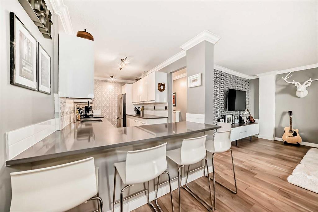 Come see this home for yourself....THIS weekend: OPEN HOUSE: Saturday Jan 10th: 11 am – 3 pm! Welcome home. Walking through the front door of your new home will check every box on your list including it being FULLY UPDATED, a Sunny South Exposure, and situated in the most walkable neighbourhood in Calgary with a walkability score of 99/100! Proudly presenting to you: Manor House – this well-cared for, quiet CONCRETE complex – where your affordable condo fees include all utilities (yes....even electricity!). This SPECTACULAR 2-bedroom home has been transformed and modernized, in the desirable Beltline neighbourhood – just steps away from all the action! Inside you will instantly appreciate the new elegant luxury vinyl plank flooring throughout the home which matches the modern décor throughout. The home features exceptional updates and upgrades throughout, which start out in the striking kitchen. The kitchen (like the entire home) has been completely renovated, highlighted by ALL new cabinetry and stunning Quartz gun metal grey countertops, with undermount sink. Counter level seating awaits, perfect for visiting with friends and family as you entertain from your exquisite gourmet kitchen. Updated SS appliances can’t wait to be used by you! There is ample space for a deep freeze IN your kitchen, without losing any counter or cupboard space, tucked away under the counter! Just off the kitchen is a large dining room, which can easily host a large dining table, perfect for making memories with friends and family. This home features beautiful crown moulding throughout; as well as beautifully updated lighting throughout. The large stunning living room is an exceptional space, large enough to accommodate all your furniture, providing plenty of space to relax or provide the ideal space to entertain! The tour continues with 2 large closets in the hall, and an updated & stunning 4-pc bathroom. The Primary bedroom is one of the largest you will find – hosting a King size bed, dresser and nightstands with ease, while still allowing for ample space leftover. The Primary closet features custom built-ins, easily organizing your wardrobe. The secondary bedroom is of excellent size and is the ideal place to host your home office, guest bedroom or use as a Yoga space! Newly updated vinyl windows allow your home to be energy efficient year-round! The large (11.5x 5 ft) balcony is ready for your enjoyment – offering endless sunshine with a sunny south facing view, perfect to enjoy in the warmer months! There is FREE laundry located on every floor of this superb building. Your new home comes with one assigned secure parking stall + additional storage locker for your items you don’t use every day. There is so much to love about this unique home including its location! You can walk or bike easily to work, and take in and enjoy the multitude of local shops, restaurants, pubs, grocery stores, and so much more!
