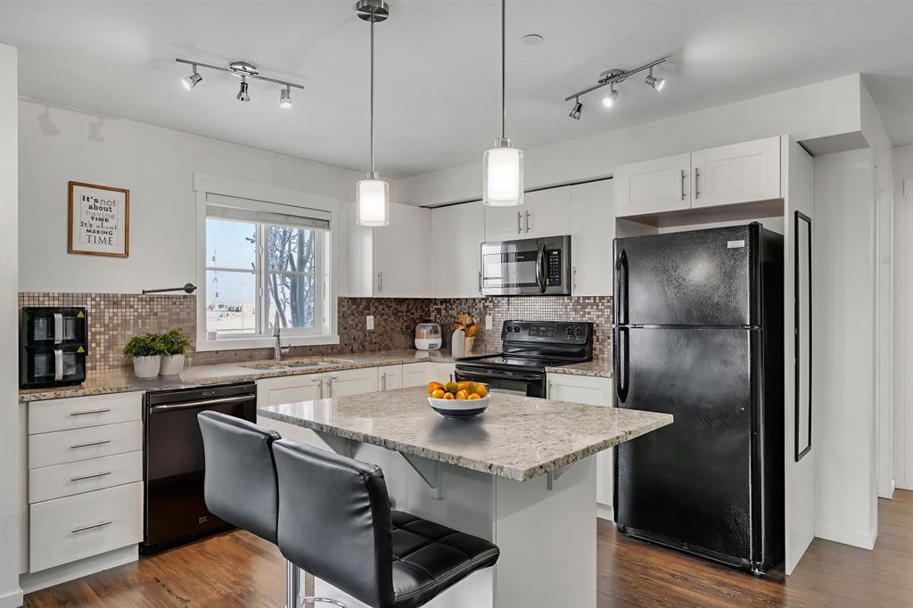 This doesn’t feel like your typical condo, it feels like a SPACIOUS HOME - Watch Video Tour! Picture this: you walk into a RARE 3RD FLOOR CORNER UNIT, suddenly noticing you actually have room to breathe in a MASSIVE 900+ SQ FT LAYOUT, then step onto your EAST-FACING BALCONY and think, “Wait… where are the other buildings?”because all you see are COMPLETELY UNOBSTRUCTED HORIZON VIEWS and open sky, the kind that makes mornings calm and evenings exciting enough that you might even catch a GLIMPSE OF THE AURORA BOREALIS if the night is feeling generous. This WELL-MAINTAINED CORNER UNIT clearly shows PRIDE OF OWNERSHIP, wrapped in a CLASSIC BRICK EXTERIOR that feels welcoming before you even step inside. Once you do, the BRIGHT & OPEN FLOOR PLAN pulls you in with LARGE WINDOWS, BEAUTIFUL VINYL PLANK FLOORING, and NEWER BEDROOM CARPETS, starting with a smart entry hallway that keeps your living space private and gives you room for bags, shoes, and real life plus a stylish feature wall that quietly says, “Yes, this place is special.” The kitchen quickly becomes the star of the show with GRANITE COUNTERTOPS, a CENTRE ISLAND WITH PENDANT LIGHTING perfect for breakfasts, coffee, or midnight snacks, and a SINK WITH A VIEW that somehow makes dishes feel less like a chore. The MASSIVE LIVING ROOM opens directly to the balcony, features a stunning accent wall, and feels so cozy it might ruin hotel stays forever, while a DEDICATED DINING SPACE sits conveniently beside the kitchen for dinners you’ll swear you’ll host more often. The PRIMARY BEDROOM offers peaceful views, DUAL WALK-THROUGH CLOSETS, and a PRIVATE ENSUITE FULL BATHROOM, while the SECOND BEDROOM WITH A VIEW sits near the 4-PIECE MAIN BATH. Add UPGRADED IN-SUITE LAUNDRY, CORNER TITLED HEATED UNDERGROUND PARKING, an ASSIGNED STORAGE UNIT, AMPLE VISITOR PARKING, and PET-FRIENDLY (BOARD APPROVAL) living in a special complex with a beautifully designed central courtyard, and life just gets easier. Step outside this specific building in COPPERFIELD PARK II and you’re surrounded by PARKS, PLAYGROUNDS, PONDS, WALKING PATHS, AND SPORTS COURTS, while being just minutes from 130TH AVENUE, SOUTH HEALTH CAMPUS, shopping, dining, schools, and effortless access to STONEY TRAIL & DEERFOOT TRAIL and with a PROFESSIONALLY MANAGED COMPLEX offering solar assistance and beautifully maintained grounds, this home delivers quiet residential living, unbeatable value, and the kind of comfort that makes you wonder why you didn’t move sooner, because once you see it, you won’t be asking if it’s the one, you’ll be asking how fast you can make it yours.