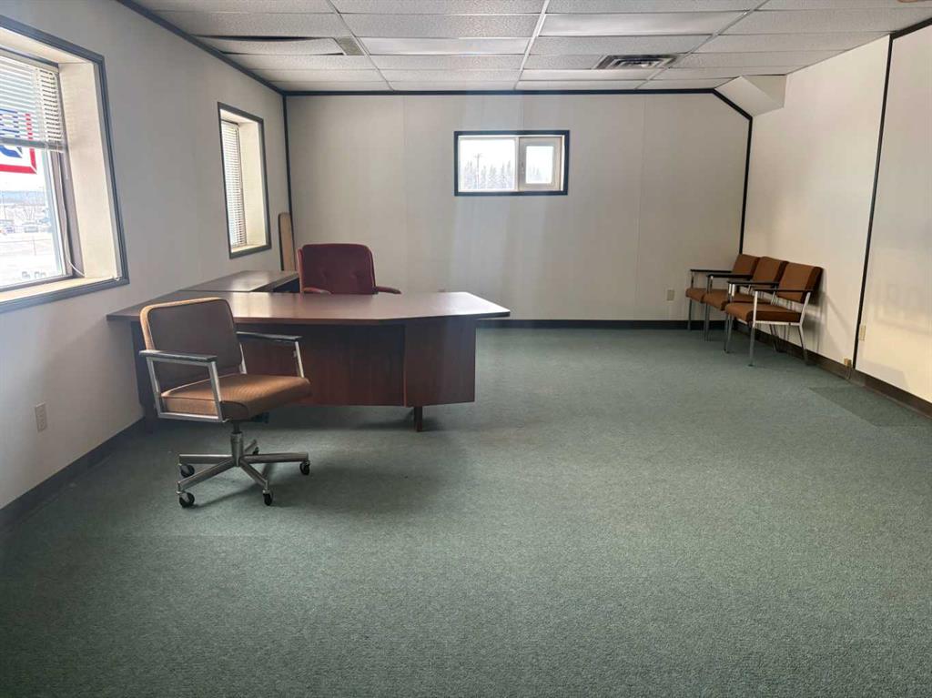 Single office space for lease! Upstairs offices have own entrance and own AC. Plenty of parking for customers and staff alike. 2 bathrooms and access to a conference room. Price includes all utilties, and yard maintenance.