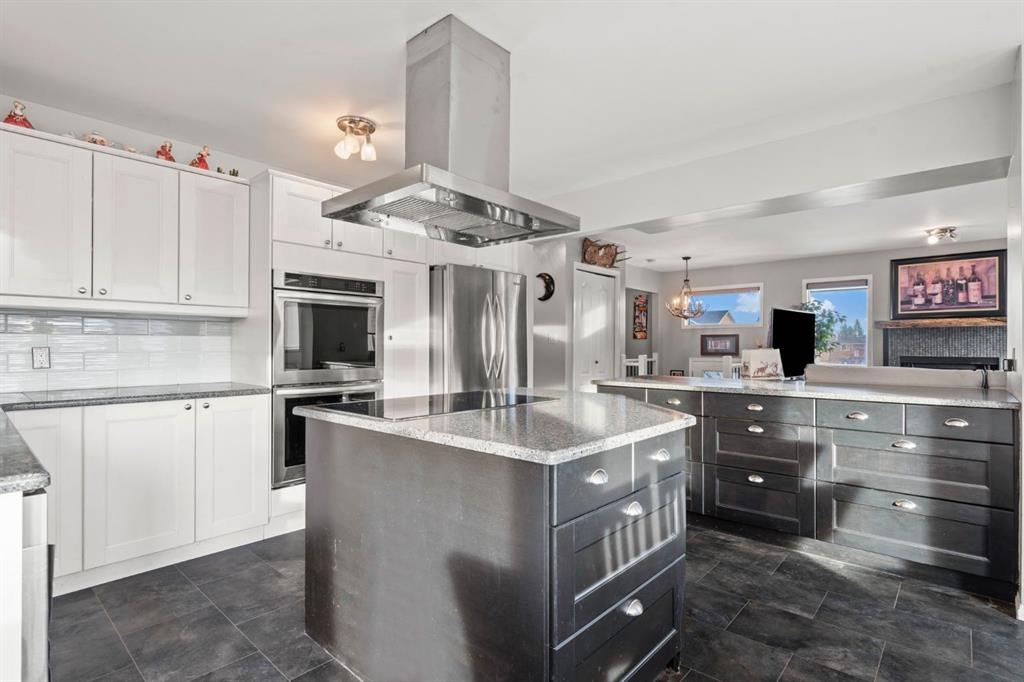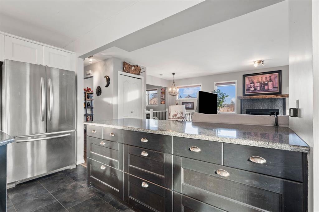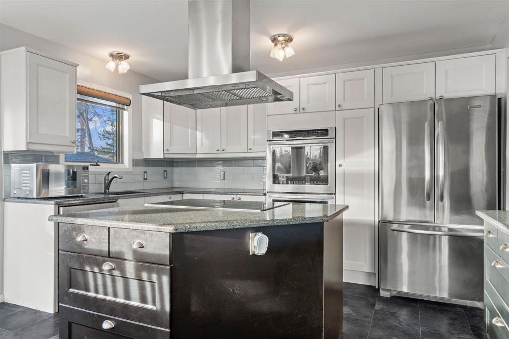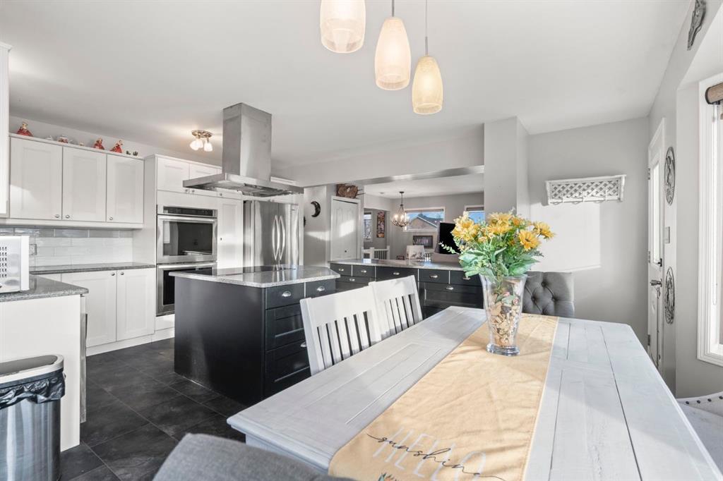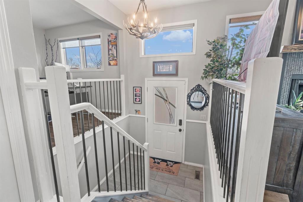 A RARE FIND. This completely updated home offers over 2000 developed square feet, is on a MASSIVE PIE SHAPED LOT, surrounded by MATURE TREES, the foothills, and BACKING ONTO GREENSPACE/ playground, as well as the Sheep River! This one of a kind home is in a quiet cul-de-sac, with only one neighbour on the one side and a park path on the other. As you enter you will notice the open concept layout, elegant railing, and gorgeous engineered hardwood floors. The Kitchen is the focal point with shaker style cabinets including plenty of slow close drawers, a cabinet pantry, stunning quartz counters, stainless steel appliances with built in ovens, tile backsplash, and a sink overlooking the oversized backyard. A two tone expansive island looks onto the bright dining room surrounded by large windows that draw in the natural light. This has direct access to your L shaped deck that wraps around the side of the house. On the other side of the kitchen is a well sized living room showcasing an inviting wood burning fireplace creating warmth and ambience. There is an open concept office which could be converted into another bedroom, or used as a formal dinning room. The private primary at the back of the home offers two closets for storage and a stunning 3 pc ensuite with heated floors, a fully tiled shower including body jets, and all new plumbing fixtures. There is a well sized secondary bedroom and the main bathroom also with heated floors, but a deep soaker tub shower combo. This level is complete with a convenient upper level washer and dryer and paint finish ceilings. The lower level has a SEPERATE ENTRANCE and large windows making it feel bright! An expansive rec room, with a wet bar make it ideal for entertaining, or a space for guests or older children. This area is complete with a workout or office space, an additional laundry area, a third lower level bedroom and an updated 4 pc bathroom. The serene SUNNY SOUTHWEST yard offers a complete outdoor oasis with an upper and lower deck, gazebo, firepit, plenty of garden boxes. Enjoy being surrounded by nature with easy access to the city. Other noteworthy features include a new furnace, central air, upgraded 220 Volt electrical, No Poly B, and a low maintenance yard. Schedule your private showing today!