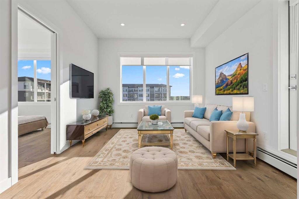 Welcome to this stunning 2-bedroom, 1-bathroom apartment on the 4th floor of the desirable Cavallo development, offering the perfect combination of modern living and convenience. The open-concept floor plan features high ceilings, large windows, and an abundance of natural light, creating a spacious and inviting atmosphere. The gourmet kitchen boasts premium cabinetry, stainless steel appliances, and sleek Quartz countertops. You\'ll also enjoy the convenience of in-suite laundry, while the large balcony with a gas line provides the ideal space for outdoor relaxation or entertaining. Cavallo offers residents exceptional amenities, including a pet spa, fitness center, entertainment lounge, visitor parking, and EV charging stations, ensuring comfort and convenience at every turn. Located just steps away from essential amenities like grocery stores, restaurants, banks, and medical offices, and only minutes from the airport, shopping malls, and major grocery stores, this home offers a prime location with easy access to Stoney Trail, connecting you to all corners of Calgary. Whether you\'re looking for a stylish home to call your own or a comfortable space with easy access to the city\'s best offerings, this apartment is the perfect fit. Checkout 3D tour…!!!