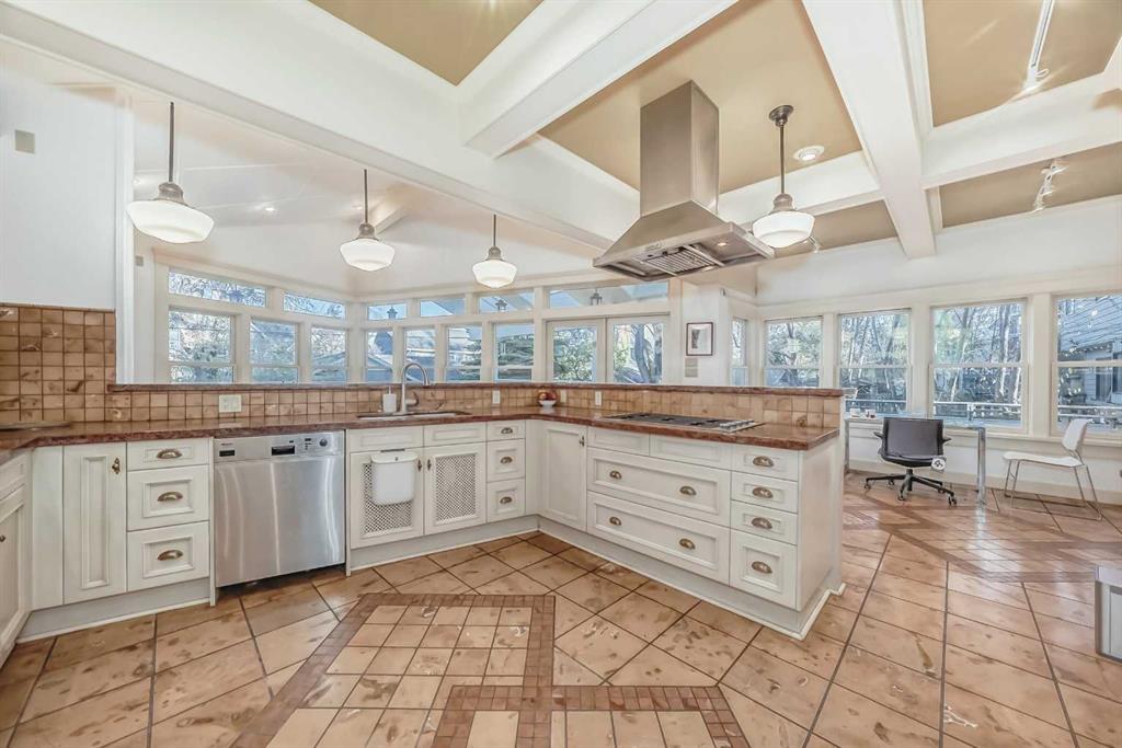 Facing a serene park in historical Scarboro—one of Calgary’s most coveted inner-city enclaves—this exquisite 5-bedroom red-brick residence offers 4,289 sq ft refined living space (Main Floor alone boasts about 1700 sq ft. expansive living place with 3 fireplaces) and a blend of heritage charm and modern craftsmanship. From 2000 to 2022, about $800,000 had been invested in fundamentally transforming the home with modern builds: new three-level 1,700 sq ft addition including the new custom kitchen and family room; updated bathrooms, oversized under-drive, attached double garage, in-floor heating, heated driveway, electrical and mechanical updates, new patio, new windows, new flooring, vacuflo system and more.