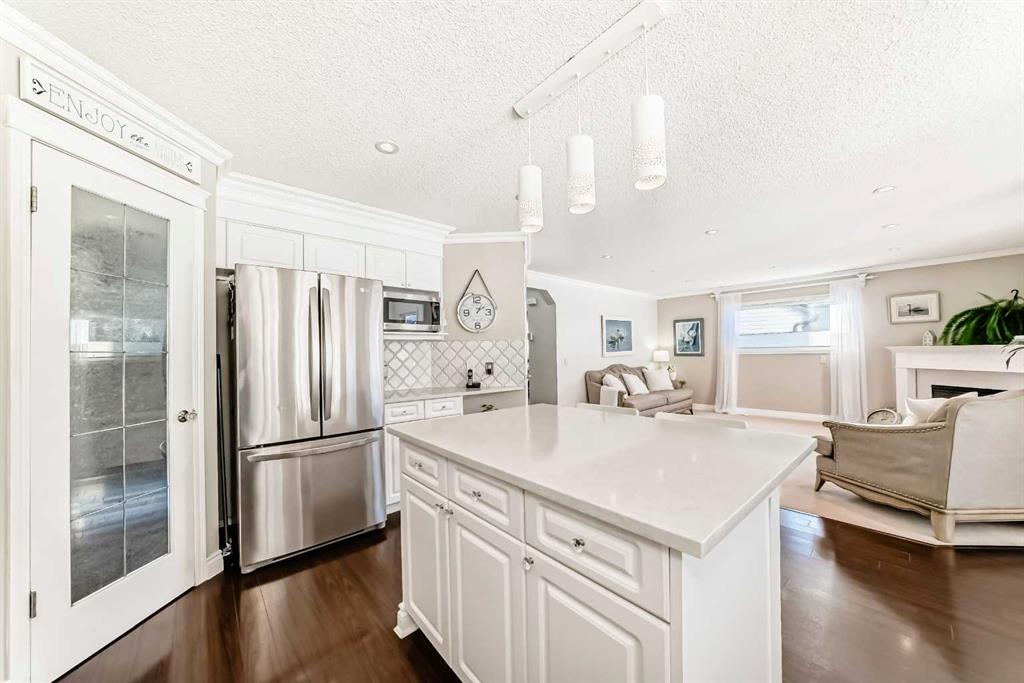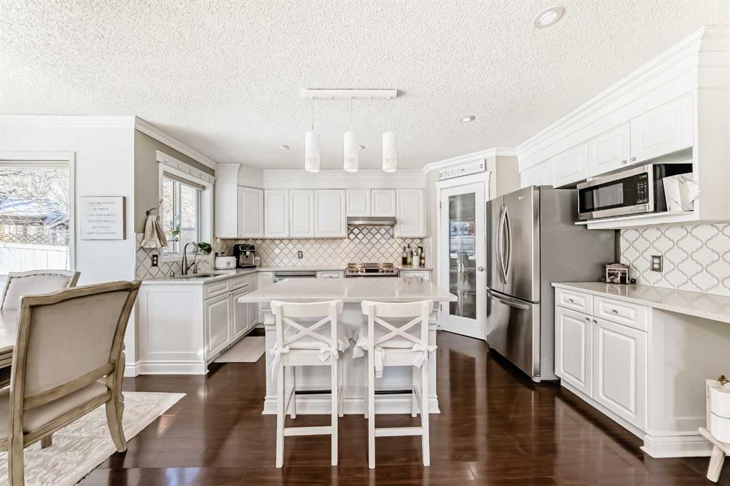 Welcome to this exceptionally clean and beautiful updated designer home featuring over 2600 sq. feet of development featuring 3 bedrooms up and 2 down! Ideally situated on a quiet street within walking distance to an exceptional range of amenities such as Somerset LRT station, YMCA, library, elementary school and Catholic high school, spray park, tennis courts, playgrounds and shopping. Recent updates include a new kitchen with granite tops, tile backsplash, new pot lights in the living room always keeping it bright, updated main and ensuite baths with glass shower and a classic clawfoor tub. Crown mouldings in living room, dining room and kitchen add a classic touch! Exterior upgrades include enhanced stonework on the porch, patio, and rear siding. The roof and soffits were replaced in 2021, along with partial siding updates. This thoughtfully designed home is filled with natural light throughout the day, featuring morning east sunlight on the front porch and parlour, along with bright south- and west-facing windows in the living and dining areas that overlook an open rear treeline. The landscaped backyard offers a tranquil retreat with a waterfall pond, flagstone patio, and mature garden—perfect for relaxing or entertaining. Quick and convenient access to Stoney Trail and Macleod Trail, with Spruce Meadows and Costco just a short drive. A well-maintained, move-in-ready home offering comfort, style, and outstanding walkability in a sought-after community.