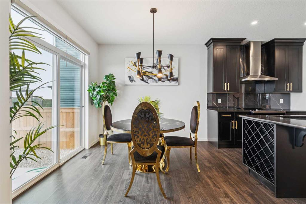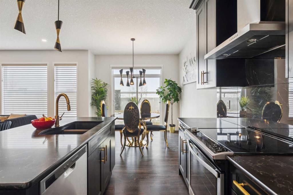 This beautifully curated residence offers refined luxury, thoughtful design, and exceptional upgrades in one of Calgary’s most desirable southwest communities. From the moment you enter the inviting open foyer, elegance and functionality are immediately apparent. A generous mudroom with direct garage access and a stylish 2-piece powder room provide everyday convenience right off the entry. The heart of the home is the gourmet kitchen, showcasing the Gourmet Advantage Package with 3 cm GG quartz countertops, full-height backsplash and cabinetry, deep undermount sink, built-in wine rack, walk-through pantry, breakfast bar, and upgraded stainless steel appliances. A 600 CFM Faber chimney hood fan completes the space, while a gas line with shut-off valve is installed for a gas range, offering flexibility to convert from the current electric stove if desired. Recessed lighting and an open-concept layout enhance the home’s bright, upscale ambiance. The sun-filled dining area features elegant glass sliding patio doors that open directly to the backyard, creating seamless indoor-outdoor living. The formal living room is anchored by a striking feature fireplace with custom built-ins, providing a refined focal point for both entertaining and relaxing. Upstairs, a large bonus room offers a versatile family space, while the primary suite serves as a private retreat with oversized windows, a massive walk-in closet, and a spa-inspired 4-piece ensuite. Two additional generously sized bedrooms share a beautifully appointed 4-piece bathroom with custom shelving. A convenient upper-level laundry room with sink and storage adds to the home’s thoughtful design. The fully developed basement expands your living space with a spacious family/recreation room, a large bedroom, and a 4-piece bathroom—ideal for guests, teens, or a home office. Outside, enjoy a fully fenced and landscaped backyard complete with a private patio and gas BBQ line, perfect for summer entertaining or quiet evenings at home. Additional premium upgrades include heated floors in all bathrooms, central air conditioning, Kinetico water softener and dechlorinator, Blanco Liven Silgranit laundry sink, upgraded stair railings to the basement, oak wood-capped stub wall detailing, and recessed lighting throughout.Ideally located near parks, pathways, schools, shopping, and major routes, this exceptional home delivers a lifestyle where luxury meets everyday comfort—a must-see to truly appreciate.