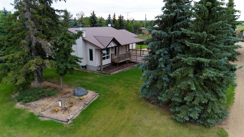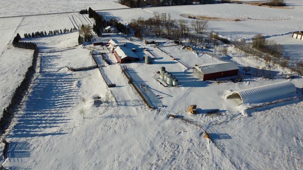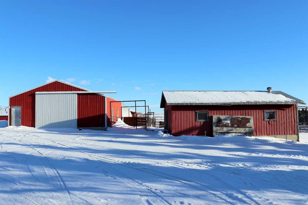 Acreage / Agri-Business Opportunity on Pavement in Central Alberta. Exceptional 37.83 acre property offering a rare combination of a family home, extensive agricultural infrastructure, and great views. Ideal for livestock, equestrian, crop production, or agri-business ventures, this well-established acreage features a mature treed shelterbelt and developed yard site with expansive south and west views overlooking the surrounding countryside and Samson Lake. The 1,370 sq. ft. bungalow offers a highly functional floor plan with three bedrooms on the main level and two additional bedrooms downstairs. The family styled kitchen and dining area flows into a comfortable living room featuring a wood stove and large windows that capture the stunning views. The primary bedroom includes a walk-through closet and 4-piece ensuite. The main floor also has the 2nd and 3rd bedrooms and another 4 pc bathroom. The fully finished basement with in-floor heat provides a generous family room, two bedrooms, a 3-piece bathroom, and direct access to the garage. A spacious main entry offers ample closet space and a convenient 2-piece bathroom. The attached 2 car garage is heated. Step outside to enjoy the peaceful setting from the 16’ x 18’ partially covered deck, perfect for relaxing or entertaining. With nearly 40 acres, the land is well-suited for a variety of agricultural uses. The property is perimeter and cross-fenced and includes a dugout, corrals, livestock shelter, and waterers. An impressive lineup of outbuildings supports a wide range of agricultural and commercial operations, including mechanical, welding, carpentry, trucking, storage and more. Buildings include a 32’ x 20’ serviced workshop, 86’ x 30’ (with partitions) heated multi-use shop, 112’ x 54’ storage / loose-housing barn, 50’ x 100’ hay or equipment shed with lean-to, power and 18’ overhead clearance, 140’ x 36’ former silage pit with concrete floor and walls, topped with a high-quality PVC roof structure. Steel grain bins on concrete pads providing approximately 17,000 bushels of storage. There is a surface lease with annual income of $3,300+- . All of this is ideally located on paved Secondary Highway 822, offering easy access to Ponoka, Wetaskiwin, Bashaw, and Camrose.