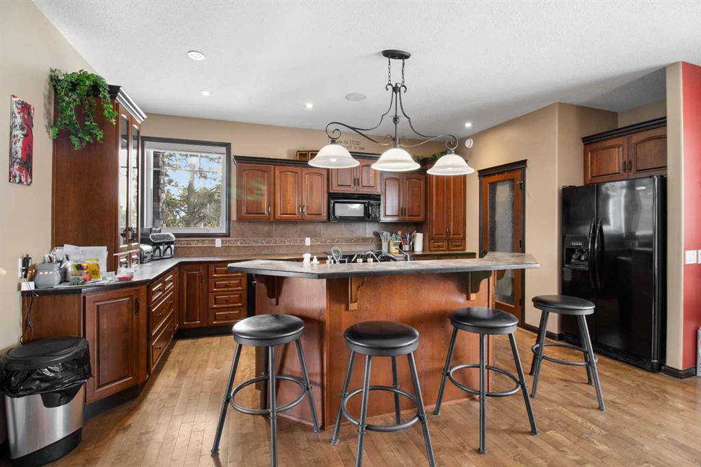 Welcome to this beautiful custom built home on just over half an acre of property. Coming in through the foyer brings you to a large kitchen and dining room area with corner pantry, center island with sinks and plenty of storage underneath, plenty of countertop and loads of cabinets. Strolling down the hall we will find a sunken living room with a double sided gas fireplace and large windows to capture the sunlight in the mornings. A little farther brings us to a large primary bedroom with an ensuite like no other. Double vanity sinks, shower, a large relaxing tub and a huge walk in closet. Another bedroom, a 2 piece bathroom and full laundry room complete the main floor. As well as the Entrance to the 1500 + sq ft heated garage that has room for 4 vehicles, toys, tools and storage, as well as a sitting area to gather with the neighbors. Upstairs takes us to another bedroom / office, with a walk in closet, a four piece bathroom and a family room. The partially finished basement with underfloor heat has been framed and wired for future finishing of bedrooms and family room but used mainly for storage at the moment. The 18x20 covered deck off the kitchen, with storage underneath, has been home to many calm nights of socializing with friends and family while listening to the birds and watching the wildlife walk through town. Very peaceful acreage type living but in town. This home is tied into water from the town, has its own septic tank and field, RV parking out back with the RV plug to power up your unit. For future building there is also power, water and another septic tank in place for a future shop building. Recent upgrades include a Hot water Tank 3 years ago, the furnace for the main floor was replaced 3 years ago but furnace for the upstairs is original. Come to Delburne and view this beautiful home that is a block from the golf course.