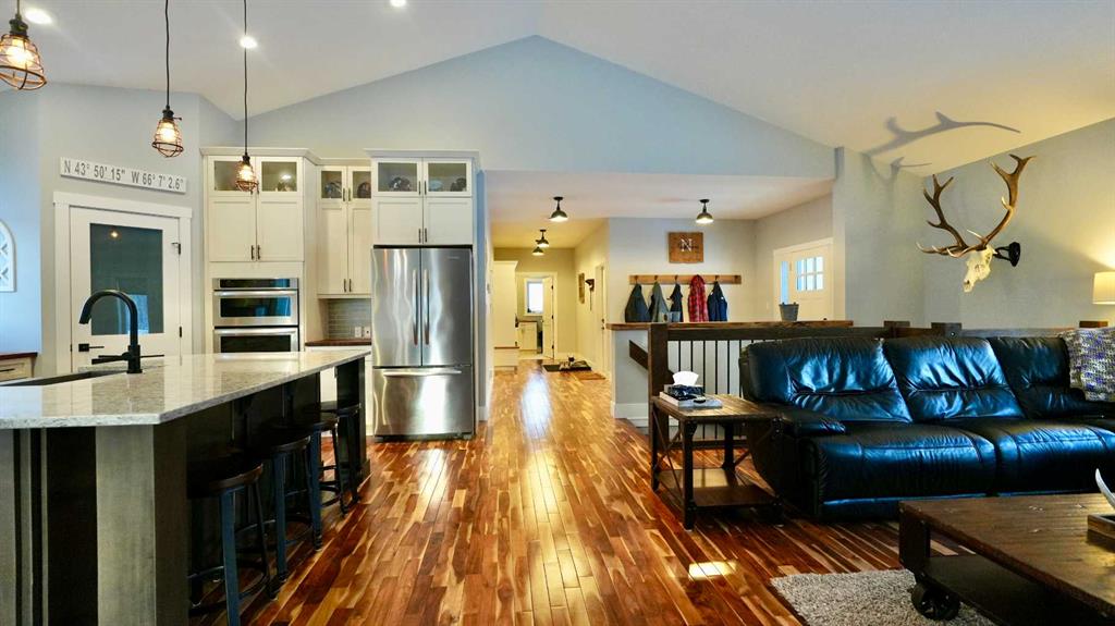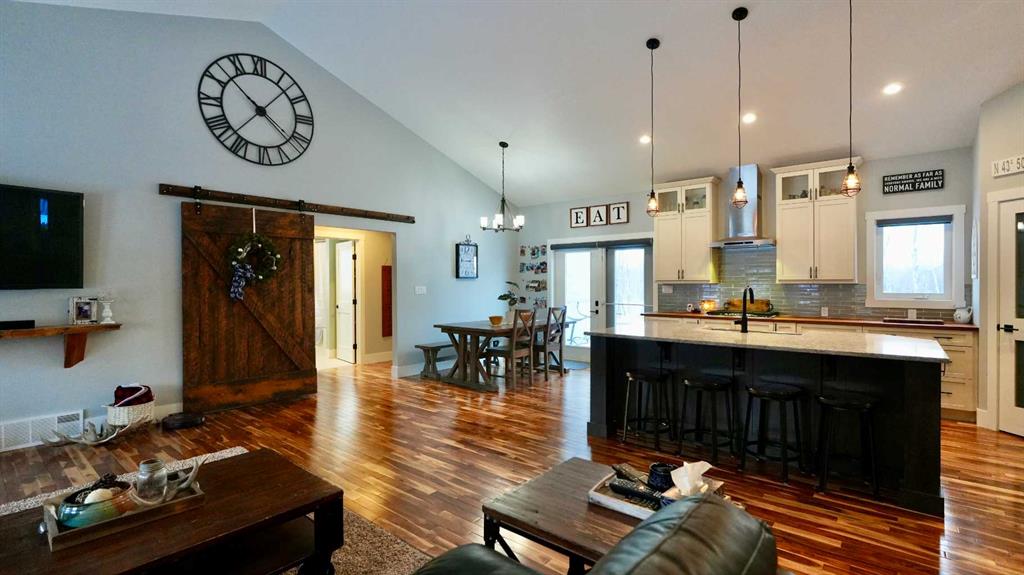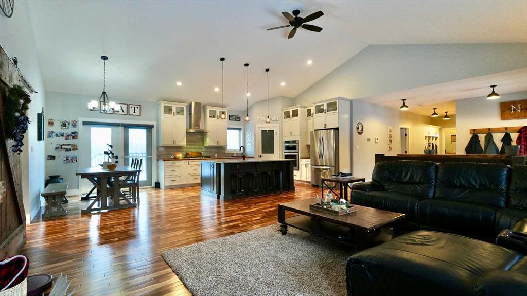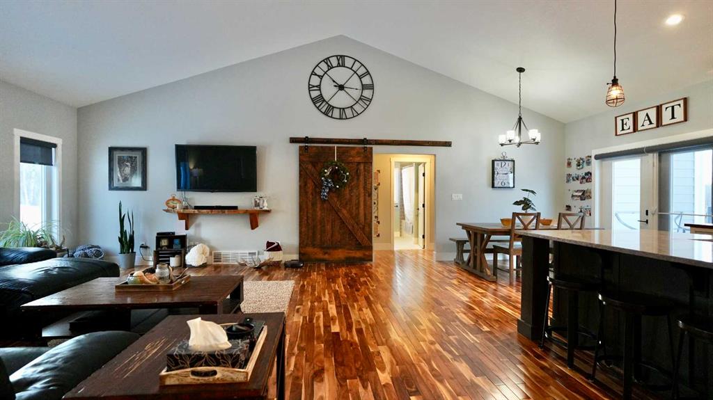 Welcome to your luxurious acreage retreat just minutes northeast of Peace River. This exceptional 2014 custom-built home is a rare offering, perfectly set on 9.98 acres of thoughtfully designed land bordered by breathtaking forest and surrounded by thousands of acres of pristine Crown land. Nature lovers and outdoor enthusiasts will appreciate the direct access to the stunning Peace River Valley and the unmatched privacy this setting provides. With nearly 2,100 sq ft of beautifully designed living space, plus a fully finished walkout basement, no detail has been overlooked in this impressive home. The heart of the home is the bright, open-concept kitchen, dining, and living area—ideal for everyday living and entertaining. The spacious kitchen features an abundance of cabinetry, a large island with eat-up bar, walk-in pantry, quartz and butcher block countertops, and tile backsplash. The oversized living room showcases vaulted ceilings that enhance the sense of space and light, while the adjacent dining area offers easy access to the back deck and BBQ area through patio doors. The main floor is anchored by a private and spacious primary suite that truly feels like a retreat, complete with a walk-in closet and a magazine-worthy ensuite featuring double sinks, a soaker tub, and a tiled shower. On the rest of the main level you will find two more generously sized bedrooms, a full bathroom, and a convenient laundry area with ample space for folding and storage. The fully developed walkout basement adds exceptional versatility and plenty of natural light, offering a large recreation room with wet bar, a full bathroom, and two additional large bedrooms—perfect for guests, family, or entertaining. There is also storage and a convenient office/computer nook. Additional highlights include a 21x24 attached heated garage with room for vehicles, storage, or a workshop. The beautifully landscaped yard features a greenhouse and storage shed, while the back deck provides shade over the lower patio and a private hot tub area—an ideal spot to relax and unwind. The remainder of the property is treed and private, with a site already prepared for a future shop and even a dirt bike track, making it a dream for kids or riding enthusiasts. Experience the perfect blend of luxury, privacy, and outdoor adventure—this remarkable acreage truly offers it all.