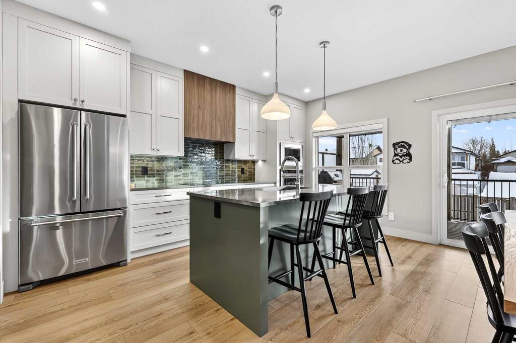 Welcome to 24 Napoleon Meadows Way — a customized Modern Contemporary masterpiece offering 2,317 sq ft of refined luxury, designed and built under the direction of an award-winning architect and interior designer. Completed in June 2025, every detail of this 3 bed, 2.5 bath home has been thoughtfully curated with elevated finishes and advanced systems rarely found in homes of this size. From the striking exterior and oversized heated 3-bay garage (825 sq ft, 13’ ceilings, in-floor radiant heat, 50 amp EV circuit, extensive outlets, and plywood-finished walls), to the soaring 18’ foyer inside, this home is nothing short of showstopping. The main floor spans 1,036 sq ft with 9’ ceilings and features an open-concept living, dining, and kitchen space with upgraded appliances (induction cooktop, upright freezer, built-in microwave/oven, fridge, and dishwasher), a butler’s pantry, tech/coffee bar with RO water + food grade fridge, and a wet bar. The rear deck spans 32’ x 10’, partially covered with gas hookups on both ends — perfect for four-season entertaining.