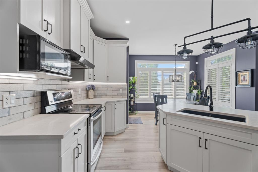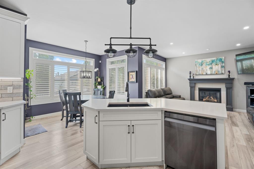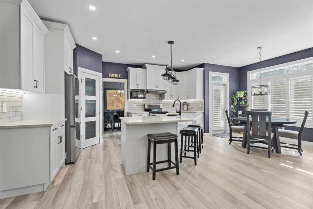 It’s rare to find a home that offers five true bedrooms upstairs, including a tucked away room currently used as a private office that can easily function as a bedroom-a layout that’s perfect for growing families, guests, or multi-generational living. Welcome to this warm and inviting family home in Drake Landing, thoughtfully designed for both everyday living and entertaining. Step into the bright foyer with open to below ceilings that create an airy, welcoming first impression. The renovated kitchen is a true showstopper, featuring white cabinetry, quartz countertops, a stylish tile backsplash, and a corner pantry for added storage. The sunny breakfast nook is ideal for casual meals, while the adjoining living room with a cozy gas fireplace sets the stage for family gatherings. A large formal dining room and a second main floor living space provide flexibility for entertaining, working from home, or relaxing. California shutters throughout the main floor add a touch of elegance, while the mudroom with access to the double attached garage keeps busy family life organized. Upstairs the four bedroom layout truly shines. The spacious primary suite offers a walk in closet and ensuite with soaker tub and shower. Three additional generous bedrooms, plus convenient upper level laundry, make this level as practical as it is comfortable.