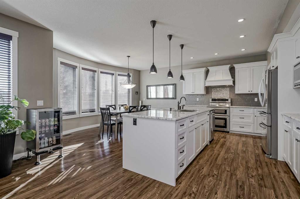OPEN HOUSE Sunday February 1st Noon-2pm. Welcome to where quality craftsmanship and thoughtful design converge. Luxury living awaits in this immaculate DreamWest Custom Built residence, which exudes pride of ownership and feels like new, offering an elegant and comfortable lifestyle in a highly desirable Okotoks neighborhood. The fully finished, heated triple-car garage (21\'5\" x 29\') is a true enthusiast\'s dream, featuring new garage doors, premium floor covering, ample storage racks, and wall organizers—the perfect space for hobbies and vehicles. New roof in 2023 and new eavestroughs 2025. Just inside the home a large laundry and mudroom with custom lockers, offering both style and function. The home is equipped with a state-of-the-art three-zone furnace and central air conditioning system, allowing for precise climate control on each floor. The main level offers a perfect blend of style and functionality, ideal for comfortable living and entertaining. The open-concept floor plan features a cozy gas fireplace in the living room, perfect for gathering with family and friends. A versatile office/flex room is conveniently located near the entry, and the front entrance boasts an open-to-above design, creating a grand and inviting first impression. The kitchen is a chef\'s dream, featuring elegantly refaced cabinetry and an abundance of additional storage in the dining area. Enjoy all stainless-steel appliances featuring French door refrigerator with water and ice dispenser, double convection oven and a dedicated hood vent with custom millwork. Adjacent discover a convenient walkthrough pantry provides extra space for all your culinary needs. Step outside onto the back deck to enjoy amazing views backing onto serene pathways, complete with a natural gas line ready for your BBQ. Upstairs, Your private primary retreat with a stunning five-piece ensuite, including a standalone soaker tub, double vanity, separate shower, and a massive walk-in closet is a perfect escape from the day. A second full bathroom accommodates two additional oversized bedrooms on the upper level, perfect for a growing family. The sunken bonus room provides an additional spacious gathering area to relax and unwind where you can enjoy captivating mountain views. The lower walkout level has an additional bedroom, full bathroom, and entertaining area perfect for a workout space or theatre room. Step outside and your low-maintenance backyard is a private sanctuary, secluded by mature trees for ultimate summer privacy. The fully landscaped yard has a concrete pad and stone pathway and sitting area surrounding a built-in fire pit, perfect for summer nights or winter fun. A walking path directly behind the property ensures extra space and separation from other homes, while the friendly neighborhood and fantastic neighbors complete this exceptional living experience. Sheep River Heights is an exclusive neighborhood in Okotoks with easy access to schools, parks, and a many shopping and lifestyle amenities.
