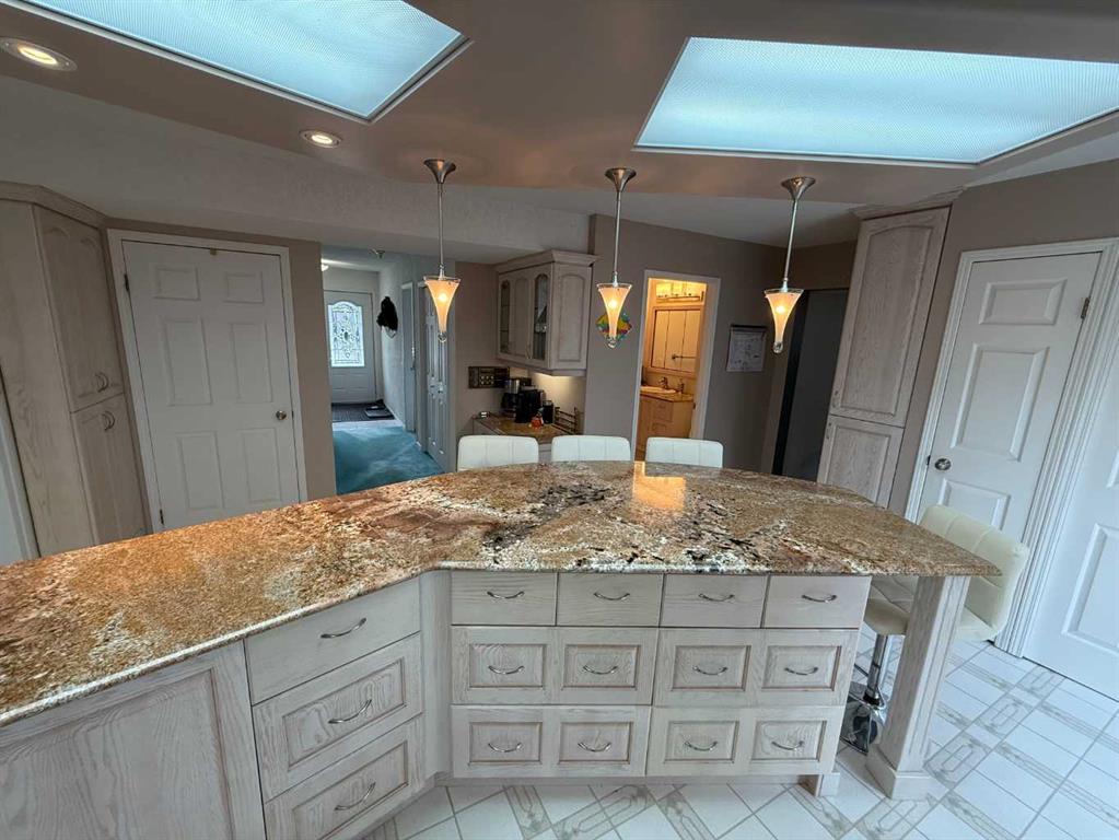 Welcome to 104 Mistaya Road, a hidden gem nestled on a cozy cul-de-sac in Hinton’s desirable Valley District. This charming and spacious home offers character, comfort, and versatility — perfect for families or those looking for income potential. The main floor features a bright and open layout with a large kitchen complete with a breakfast bar island, stone countertops, and ample cabinetry. The dining and living areas flow seamlessly together, divided only by a stunning three-sided gas fireplace that adds warmth and elegance. A sunken family room provides the perfect space for gatherings and offers direct access to the backyard oasis, which includes a covered gazebo-style deck, a patio, and beautifully landscaped grounds. This level also includes a bedroom (or office), a three-piece bathroom, and main-floor laundry for added convenience.