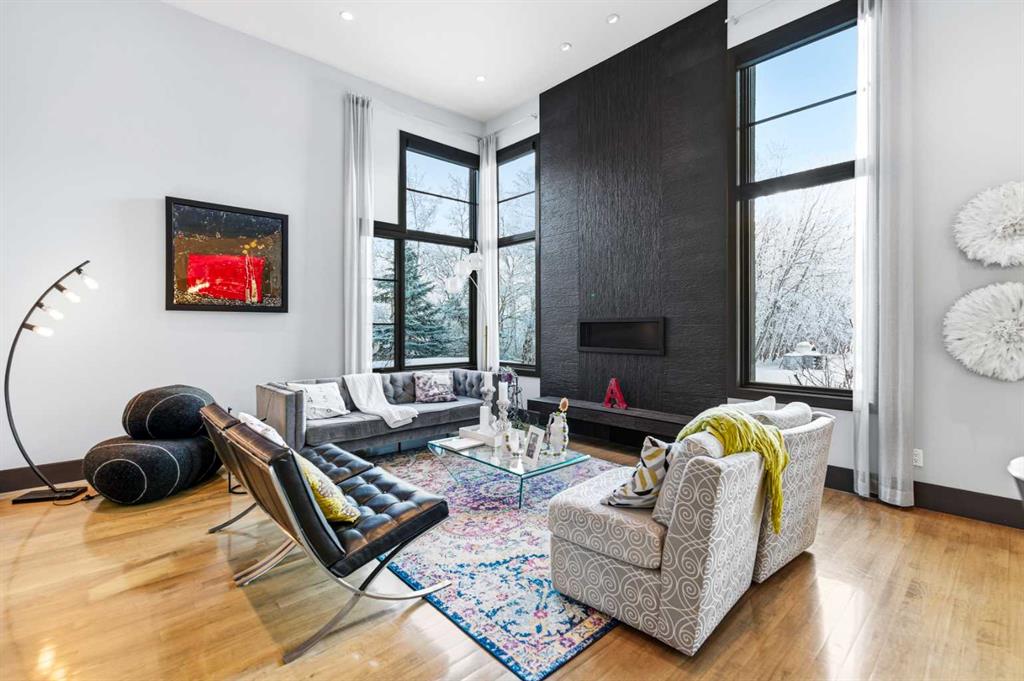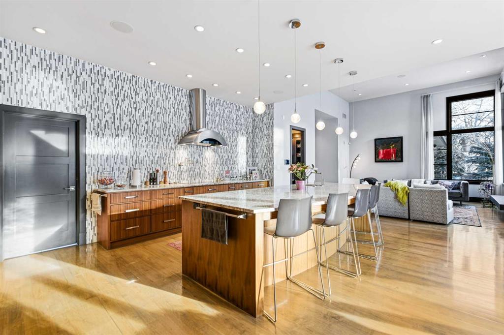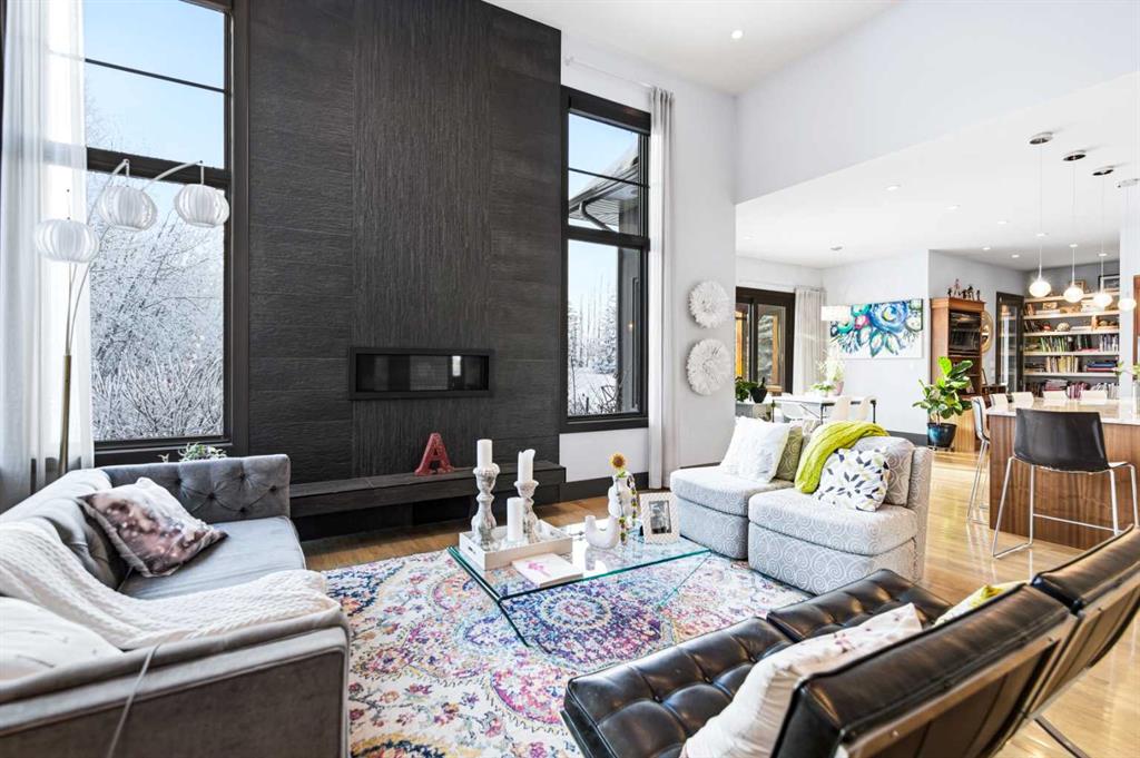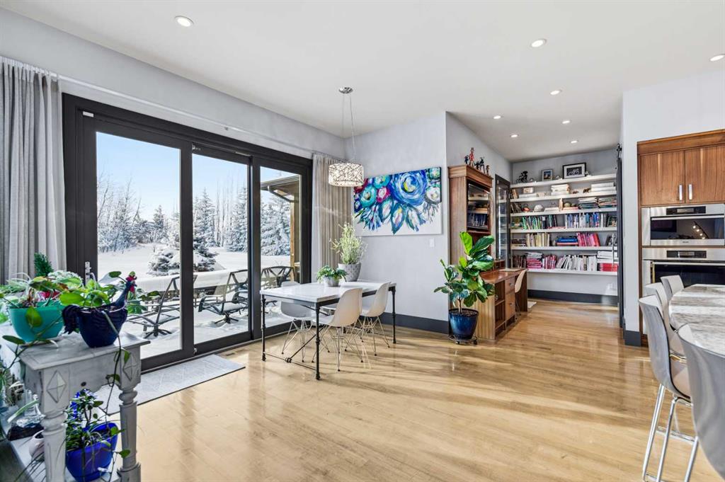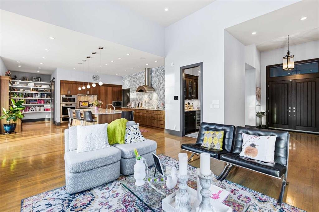 A sophisticated contemporary estate nestled on 1.93 acres, just minutes from the City. BUILT BY BOWOOD, this exceptional bungalow offers approximately 6,000 sq. ft. of refined luxury living, thoughtfully designed with extraordinary attention to detail throughout. A grand entrance welcomes you into the stunning great room, highlighted by a floor-to-ceiling gas fireplace framed by expansive corner windows, creating a bright and inviting space that sets the tone for this four-bedroom, five-bathroom residence. The open-concept layout seamlessly connects to a chef’s kitchen designed for the most discerning culinary enthusiast. Anchored by an impressive 11-foot granite island with prep sink and built-in dishwasher, the kitchen also features custom cherry wood cabinetry DESIGNED & BUILT BY SADONA CABINETS, a built-in refrigerator with designer hardware, induction cooktop, wall oven, steam oven, and a striking glass tile feature wall complemented by a sleek stainless-steel hood fan. A spacious butler’s pantry with a second dishwasher provides abundant storage and functionality. Off the great room, a walk-through coffee and tea bar leads into the elegant dining room, complete with floor-to-ceiling built-in cabinetry and a large picture window that floods the space with natural light. This bright and airy ambiance extends into the expansive 3 SEASON ROOM featuring vaulted wood-clad ceilings, west-facing windows, a wood-burning fireplace, and a built-in BBQ with hood fan—perfect for entertaining while overlooking the fully landscaped grounds. The luxurious primary suite is conveniently located on the main level and offers a SPA INSPIRED ENSUITE with a deep soaker tub, fully tiled shower, double vanity, and a generous walk-in dressing room with built-in features. Completing the main floor is a private office or additional bedroom, an oversized mudroom and laundry area, and a rare three-car attached garage with additional space for motorcycles or yard equipment. The lower level is designed for entertainment and relaxation, featuring a large TV and games room, wet bar, wine cellar, and dedicated home gym. This level also includes a bedroom with private ensuite, two additional spacious bedrooms, and a full bathroom. Additional highlights include a multi-zone Sonos sound system, whole-home water filtration, main-floor air conditioning, multi-zone in-floor heating, outdoor water feature, pizza oven, and RV parking. This architectural masterpiece is designed to impress, offering an exceptional lifestyle that will captivate guests and inspire everyday living.