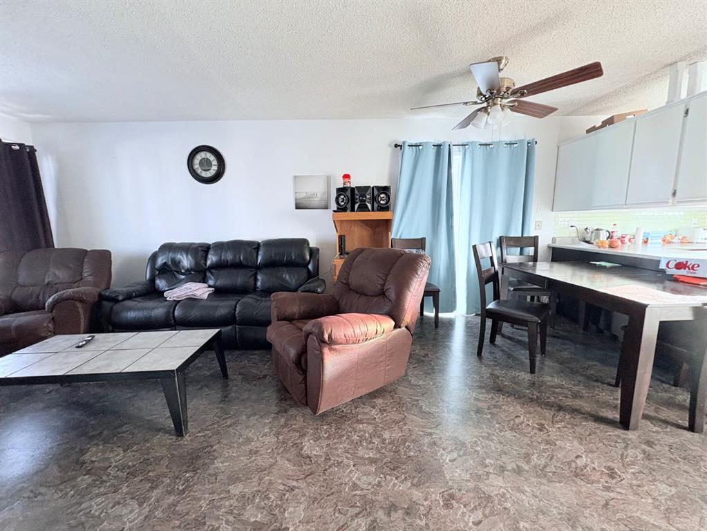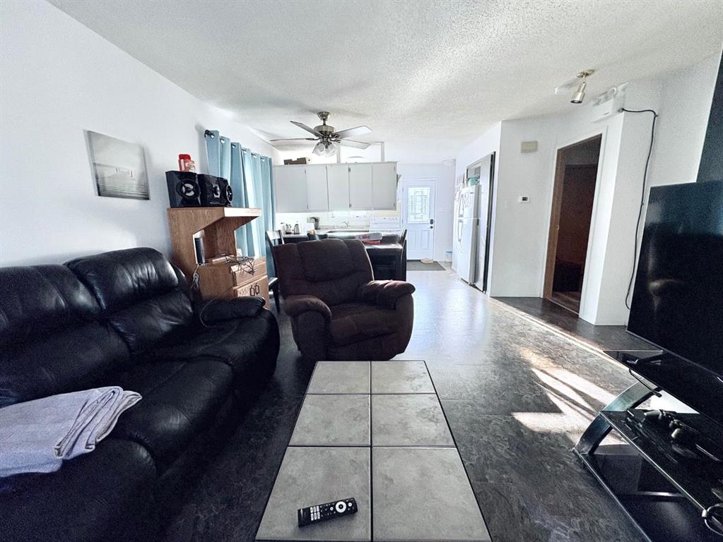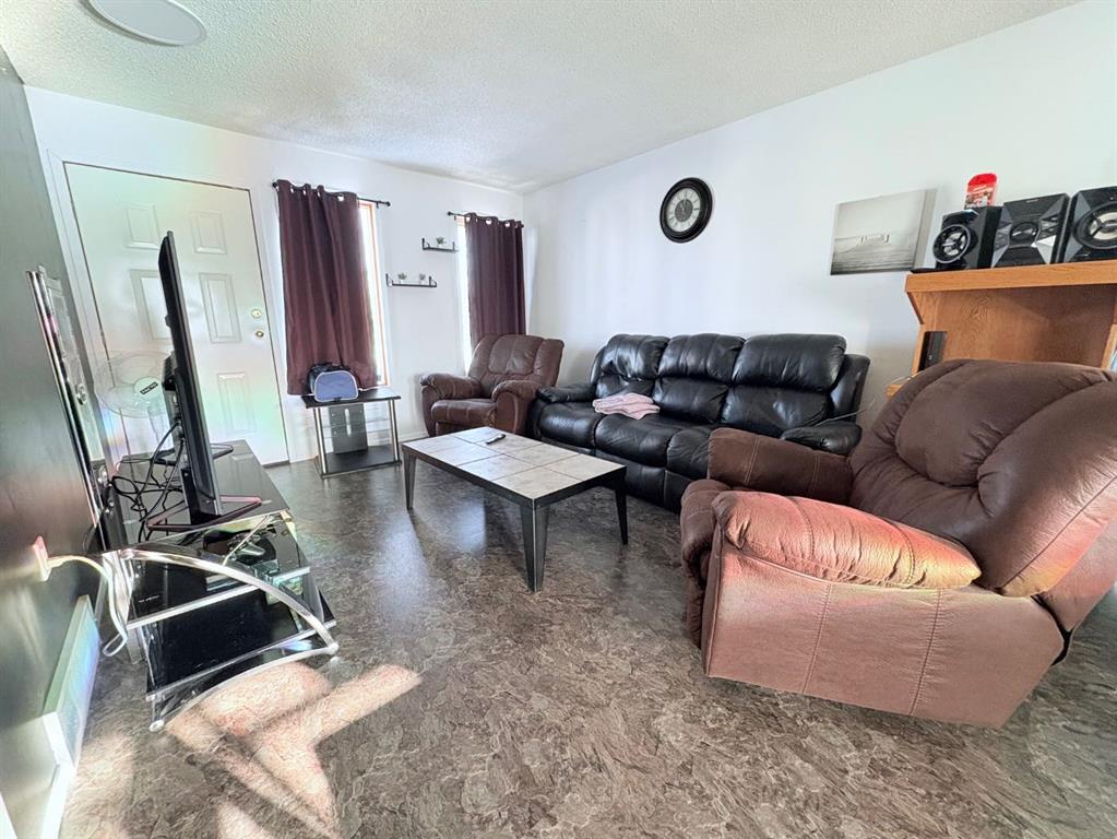The main level features two bedrooms, a four-piece bathroom, and a functional kitchen with painted cabinetry, laminate countertops, and updated refrigerator, stove, and hood vent. The finished basement adds valuable living space with a large family room, office area, and a convenient two piece bathroom. Basement improvements include updated drywall, subflooring, flooring, trim, and paint.