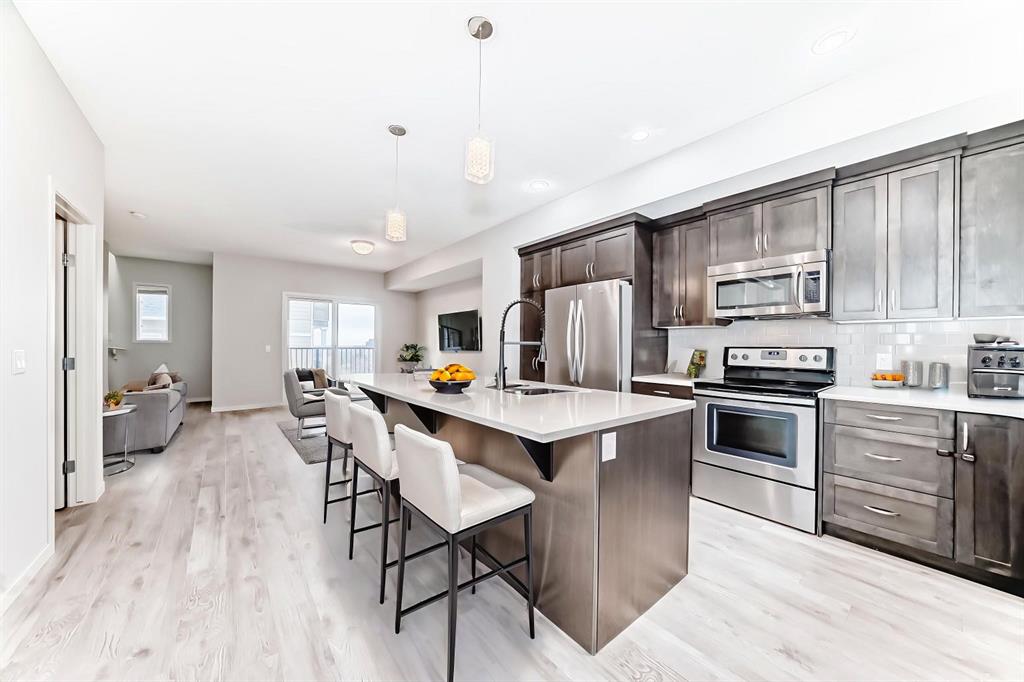 Step inside to an inviting OPEN-CONCEPT main floor boasting 9-FT CEILINGS, contemporary laminate flooring, and abundant NATURAL LIGHT from TRIPLE-PANE WINDOWS. The chef-inspired kitchen is the centerpiece of the home, showcasing QUARTZ countertops, full-height SOFT-CLOSE cabinetry, a subway tile backsplash, and a massive center ISLAND with extra STORAGE. Complete with WHIRLPOOL STAINLESS STEEL appliances, this kitchen is ideal for both everyday cooking and entertaining.