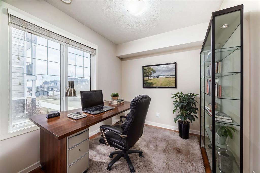 Welcome to this stunning EAST-FACING, three-storey END-UNIT townhouse nestled in the highly sought-after community of Nolan Hill! Offering 1,705 sq. ft. of thoughtfully designed living space, this modern home features 3 bedrooms, 2.5 bathrooms, a dedicated DEN or HOME OFFICE, and an INSULATED OVERSIZED DOUBLE ATTACHED GARAGE. Convenient visitor parking is located right next to the unit—perfect for hosting friends and family.