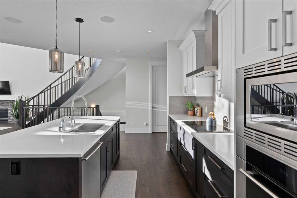 3,155 SQ.FT. | 3 BEDS | 2.5 BATHS | HOME OFFICE | 3-CAR GARAGE | SOUTH-FACING WALKOUT | BACKING GREENSPACE | DESIGNER FINISHINGS | Set on a rare south-facing walkout lot backing onto a walking path, this executive home offers one of the finest opportunities in Aspen Woods. Natural light pours through the main level, highlighting the soaring vaulted ceilings of the great room, upgraded hardwood floors, refined millwork, and statement light fixtures, all anchored by an elegant curved staircase. The gourmet kitchen is built for both everyday living and entertaining, with endless storage, quartz countertops, above- and under-cabinet lighting, and premium appliances including a Sub-Zero refrigerator, Wolf induction cooktop, chimney-style range hood, and built-in microwave and wall oven. A generous dining area opens through double patio doors to the south backyard, extending the living space outdoors. The main floor also features a closed office, half bath, and a functional mudroom with an oversized walk-in pantry. Upstairs, a large bonus room separates the primary retreat from the secondary bedrooms. The primary suite offers a true escape with a 5-piece ensuite including a soaker tub, dual vanities, stand-alone shower, and a spacious walk-in closet. Two additional bedrooms, a 5-piece main bath, and a full laundry room complete the upper level. The walkout basement is unfinished and ready for your vision, with direct access to the backyard and pathways beyond. A triple car garage, high-end finishes throughout, and an unbeatable location close to downtown, 17th Avenue’s shops and restaurants, Market Mall, Foothills Hospital, parks, and golf courses make this a standout opportunity to own a walkout home in Aspen Woods.