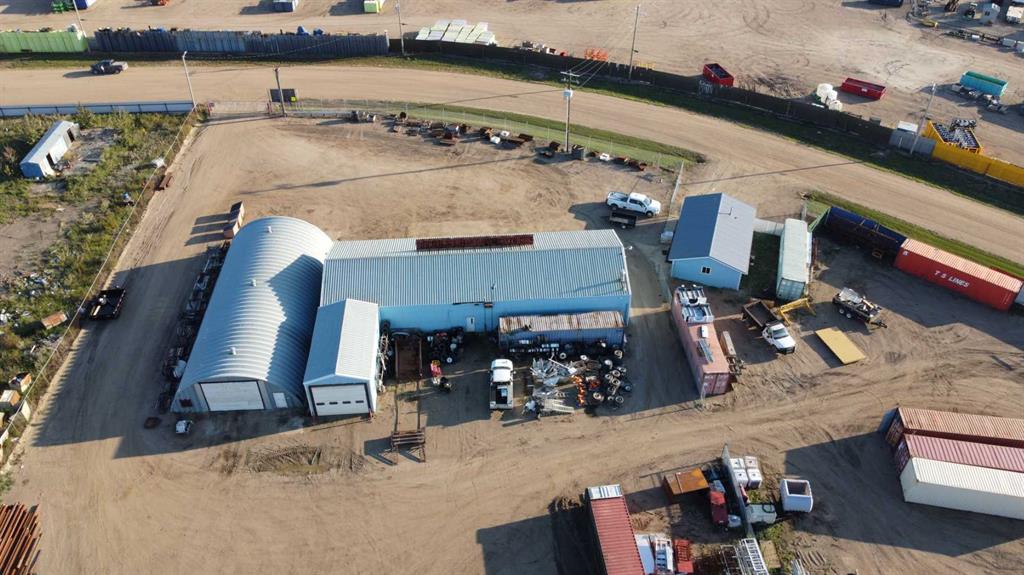 Multiple use fully fenced 3.16 acre Commercial Property with combined 8,260 sq ft of interior heated space. Three key buildings include main 4 Bay Shop with 4,100 sq ft of workspace, including 1 drive thru bay in east end addition and a Parts/Tool area at west end with coffee room space on partial 2nd floor that also houses 2 new boilers. 2nd Shop has a bright & heated work space in a 40\' x 80\' metal quonset with overhead doors at both ends, and has 3 Phase power for welding, etc. Unique door openers on cylinders allow for maximum clearance. 3rd building is a comfortable 24\' x 40\' Office Building that has a large open reception/retail area, plus 2 offices, kitchen and 4pc bathroom. Overall property can serve numerous purposes from retail to equipment repairs, autobody, manufacturing, construction, trucking, storage, etc. Large multi faceted parcel is ready to help start a new business or meet your existing expansion needs. Have a good look, it has plenty to offer and is well located in an affordable growing community.