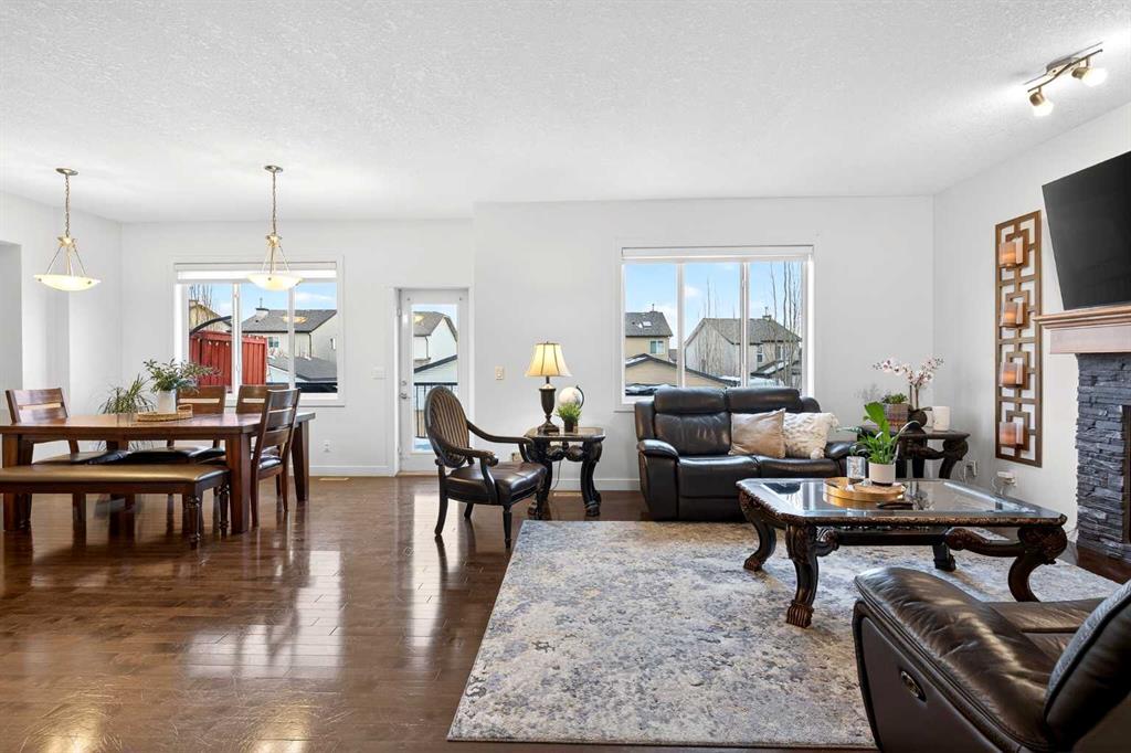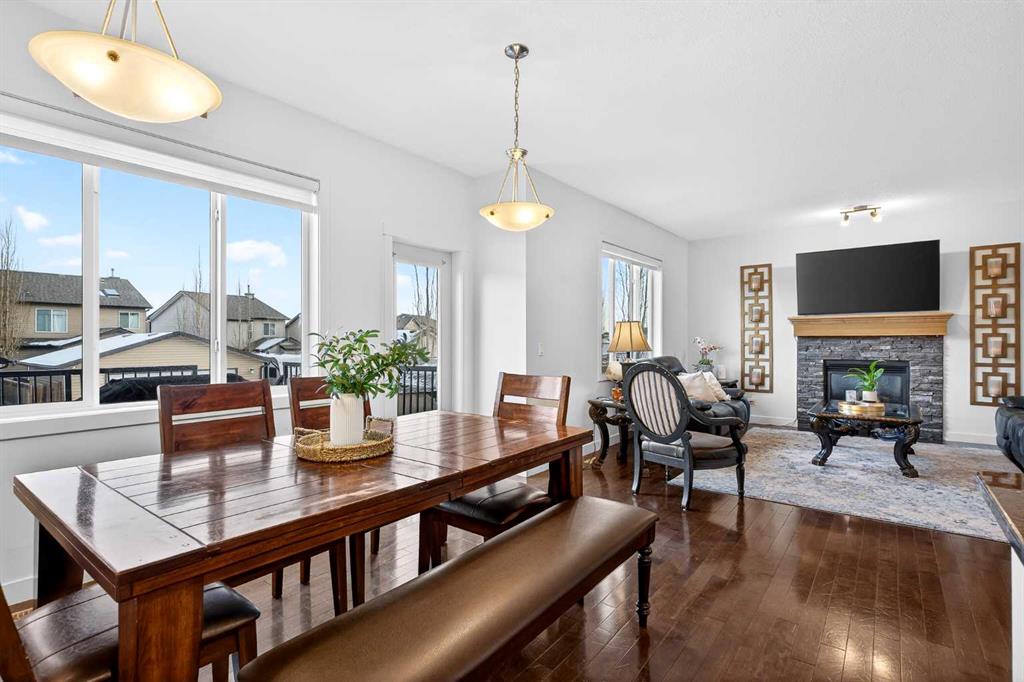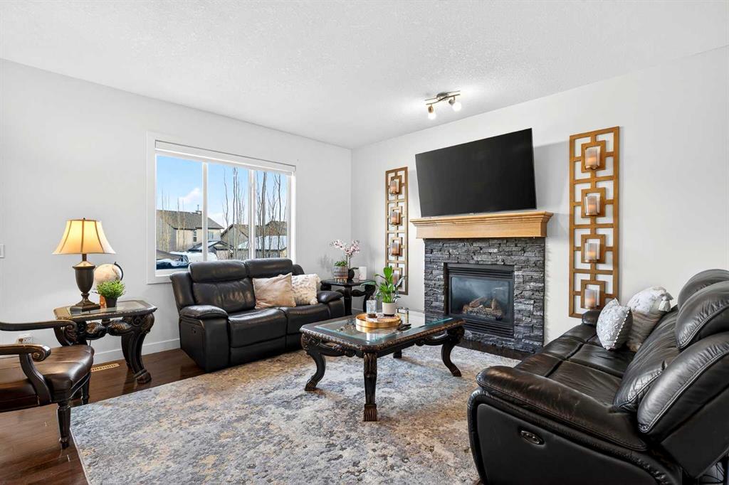 This light-filled home offers 3,687 sq. ft. of total finished living space designed for everyday living and flexibility. The main floor welcomes you with an open-to-below entry that brings in abundant natural light. A versatile front office can also function as a secondary seating area, while the living room features a gas fireplace that anchors the space.