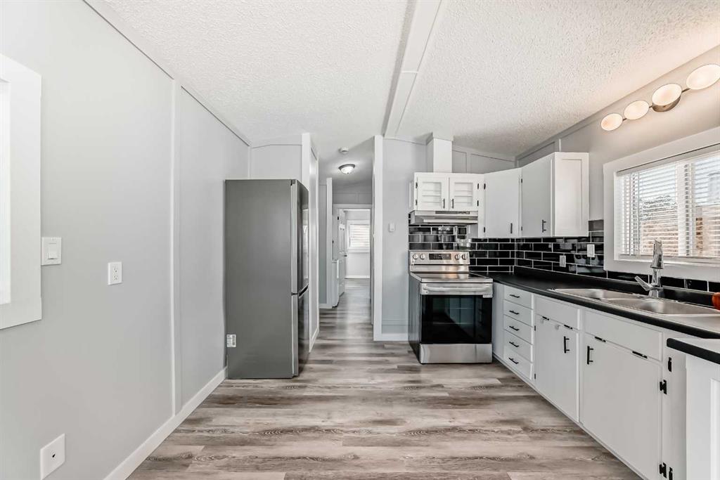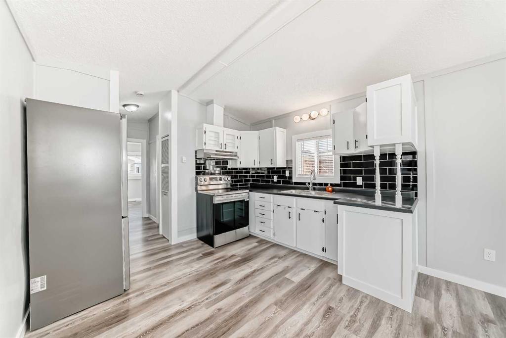 Back on the market due to financing...Re-done Park Model... Oasis Mobile Home Park. If quiet and bright is what your looking for.. look no further. This 1985 park model home with 1 bedroom, 1 (4 pc) bathroom, offers a spacious design with high ceilings, multiple large (vinyl) windows that allows a sunshine to pour in. Newly renovated with classy finishes, fresh painted, new (laminate) flooring and kitchen appliances. The attached garage (550 sqft) is insulated, wired for 240 amps, epoxy floor and new concrete driveway. Perfect for vehicles, workshop or extra storage. Affordable lot lease rate ($760.00 per month), including water, sewer, snow removal, park maintenance. Book your showing today with your favorite Realtor.