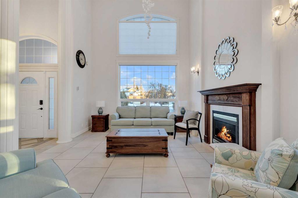 The impressive front entrance opens to soaring ceilings and an inviting main living area featuring a gas fireplace, crown mouldings, and hardwood flooring. The kitchen offers granite countertops, new appliances, and flows into a comfortable family room with built-in cabinetry, ideal for everyday living and entertaining. A large deck extends the living space outdoors and captures beautiful city and mountain views.