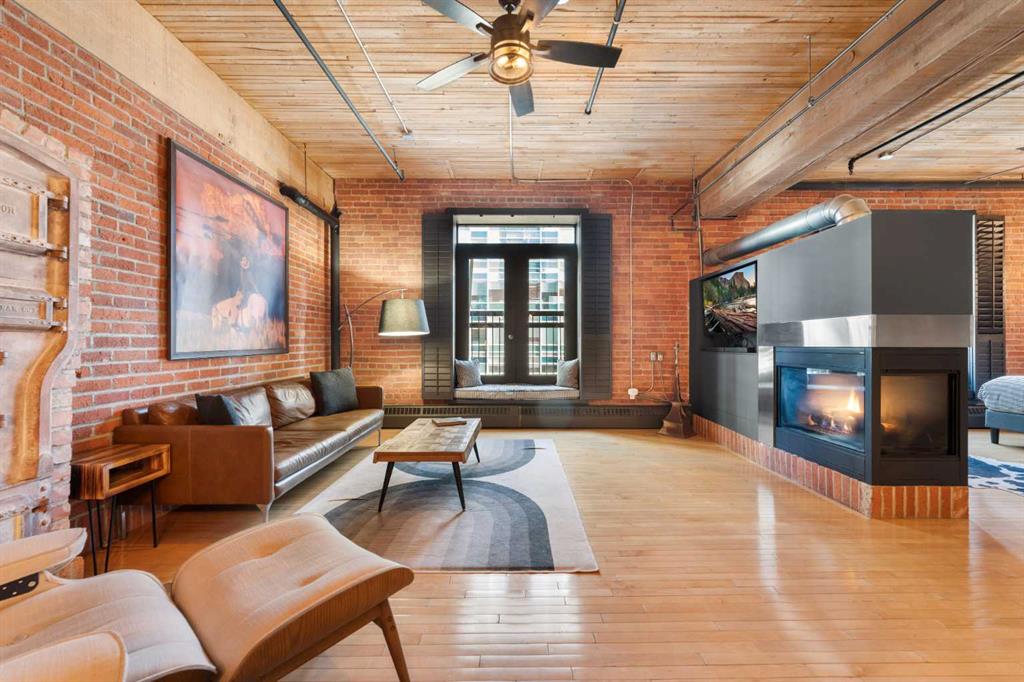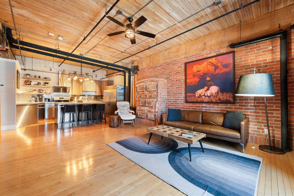 Downtown living at its finest, right on vibrant 10th Avenue SW, just steps from some of Calgary’s coolest restaurants, cafés, and nightlife. This exceptional loft is located in Calgary’s oldest warehouse, originally built in 1909 by the Hudson’s Bay Company, and thoughtfully converted into distinctive residential and commercial live-in lofts. The open-concept layout proudly showcases the building’s heritage, featuring original fir wood ceilings, exposed brick, drop-down beams, and exposed piping, all seamlessly complemented by sleek contemporary finishes. The gourmet kitchen is thoughtfully designed for both form and function, offering stainless steel appliances, a Miele dishwasher, quartz countertops, a Frigidaire refrigerator, and custom cabinetry. A striking central island provides the perfect setting for casual dining or entertaining. Steeped in history yet effortlessly modern, this space showcases true industrial elegance with soaring 13-foot ceilings and original architectural character that speaks to its storied past and inspires creativity and innovation in every corner. Large windows flood the loft with natural light, enhancing the open-concept layout and emphasizing the rich textures and craftsmanship found throughout. One of the few buildings that allows both residential and commercial use, this versatile loft offers flexibility as a stylish home with generous living and dining spaces or as an inspiring professional workspace, complete with a convenient two-piece bathroom. The expansive bedroom—easily adaptable as a premium office—features a luxurious ensuite with a tub and separate shower, along with a spacious closet. French doors open to a Juliet balcony, filling the space with natural light and fresh air. This is loft living redefined—a rare fusion of heritage and contemporary style. The raw, artistic aesthetic creates a canvas for personal expression, while the expansive layout offers flexibility for both everyday living and entertaining. Whether you’re drawn to its vintage charm, creative energy, or unbeatable downtown location, this loft offers a unique urban sanctuary in the heart of Calgary. The building features private underground parking, a generous separate storage space, and a fitness facility. A true blend of heritage meets modernity, this one-of-a-kind residence is perfect for those who appreciate history, character, and the energy of inner-city living.
