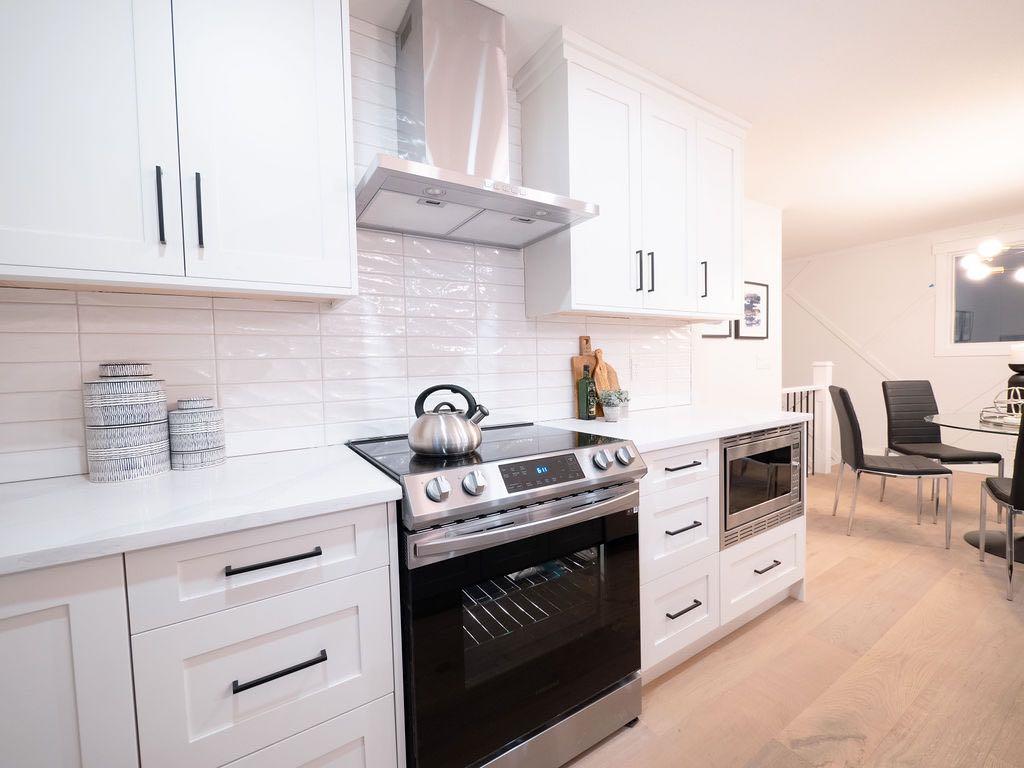 Descend to the fully finished basement to discover an expansive family room, perfect for entertaining or relaxing. This level, also fully renovated, houses a stylish laundry room, a full bathroom with a tiled glass shower, and two additional generously sized bedrooms. The layout here offers excellent potential to create an in-law suite or a separate second unit by adding a kitchen, A secondary suite would be subject to approval and permitting by the city/ municipality.