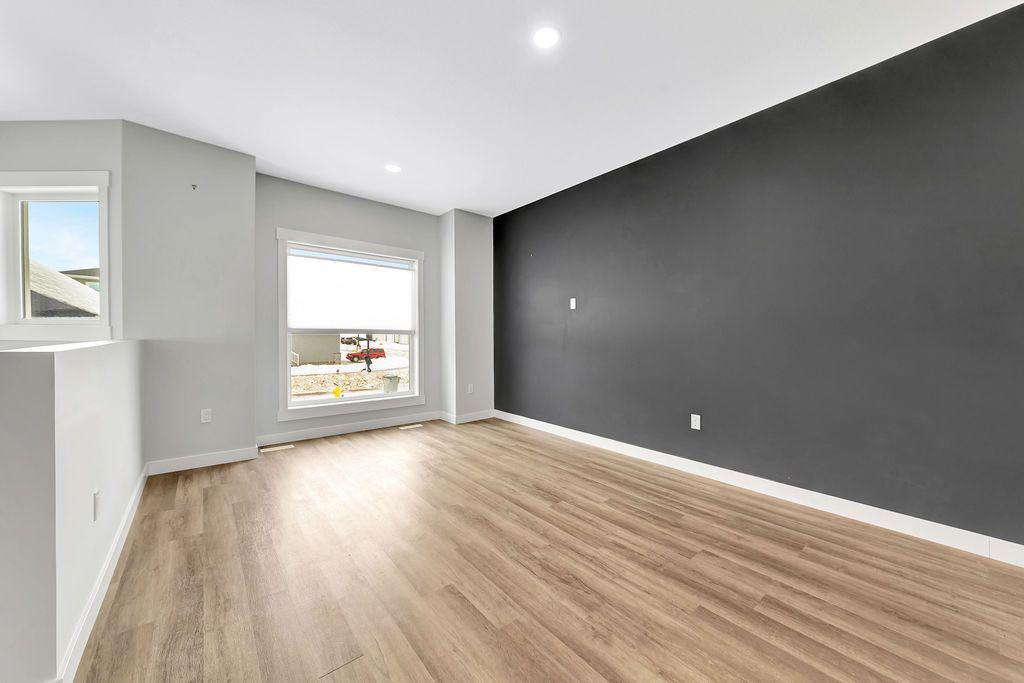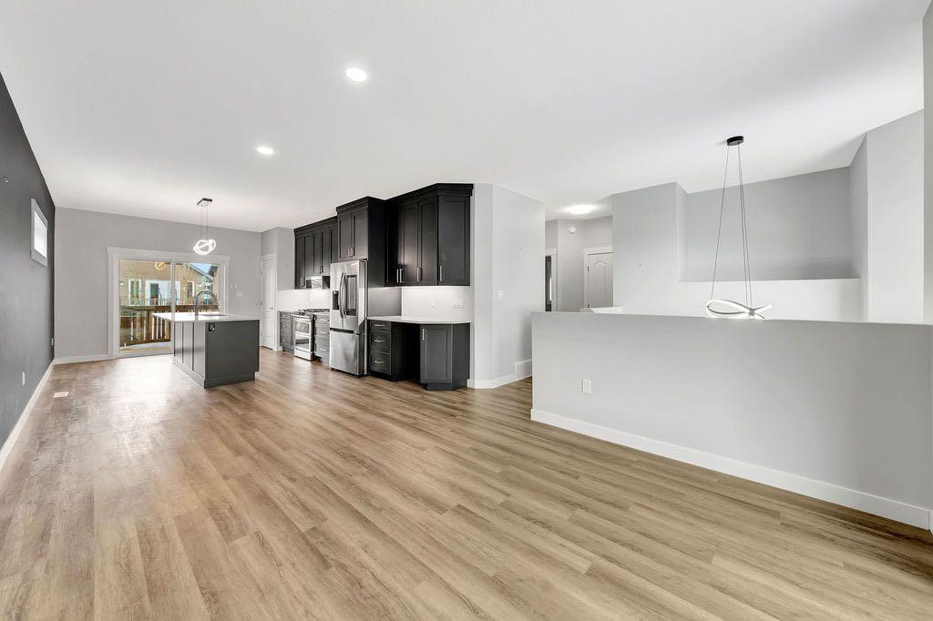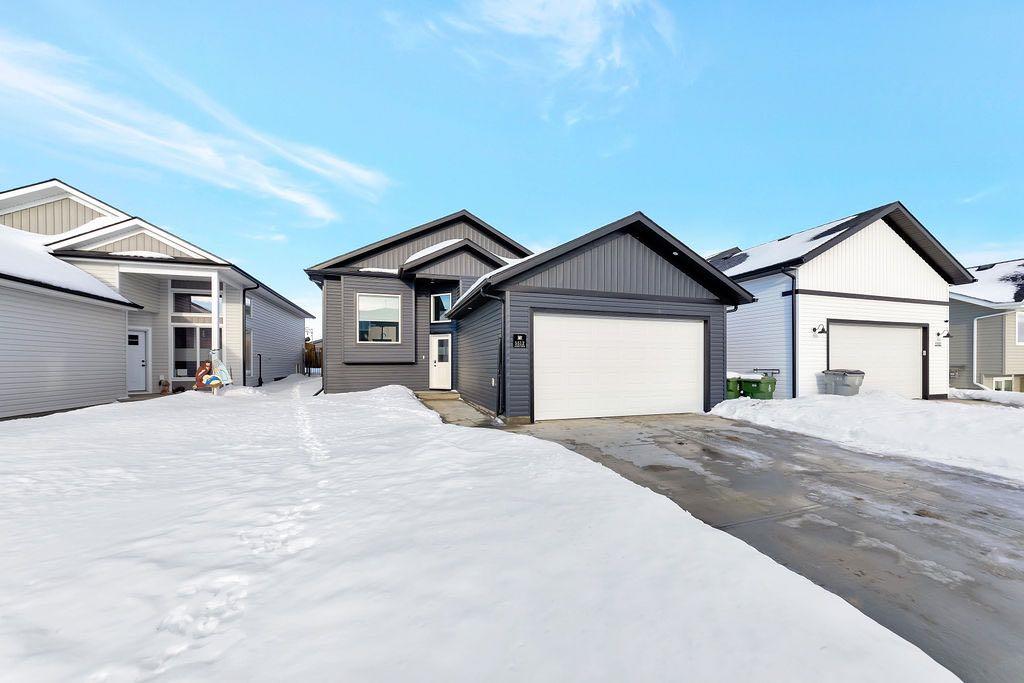 When you pull up to this clean, modern bi-level tucked into the heart of College Park, you know you’ve found something special. Located in one of Lloydminster’s most sought-after neighbourhoods—this lovely home is close to schools, parks, rinks, walking paths, and the Servus Sportsplex. Built in 2024, this home immediately feels warm, intentional, upgraded and well thought out. Inside, the entry opens to a bright, open-concept main floor with vinyl plank flooring, 9-foot ceilings, and recessed lighting throughout the living, dining, and kitchen spaces. The kitchen is a standout: beautiful navy cabinetry that goes all the way up to the ceiling with soft-close hardware, full-height storage, granite countertops, a generous 3’ x 8’ island, stainless steel appliances, and a gas stove with double oven—both functional and striking. Large patio doors lead to a covered deck outfitted with custom privacy blinds and a gas deck heater, making outdoor living comfortable well beyond summer. The home’s south-facing orientation fills the space with natural light. Three bedrooms and two baths on the main floor are thoughtfully designed, with blackout blinds in the bedrooms and a primary suite featuring a walk-in closet with custom cabinetry and a sleek ensuite with a large walk-in shower and matte black fixtures. The main bath mirrors the same quartz and cabinetry finishes. The basement is undeveloped, offering buyers the opportunity to customize layout and finishes to suit their wants and needs. Practical upgrades continue in the garage with epoxy floors, metal storage racks, floor drain, and heat prep already in place. This is a polished, low-maintenance home with flexibility for the future. Situated in one of Lloydminster’s most consistently sought-after neighbourhoods, this beauty won’t last! Book your showing today.
