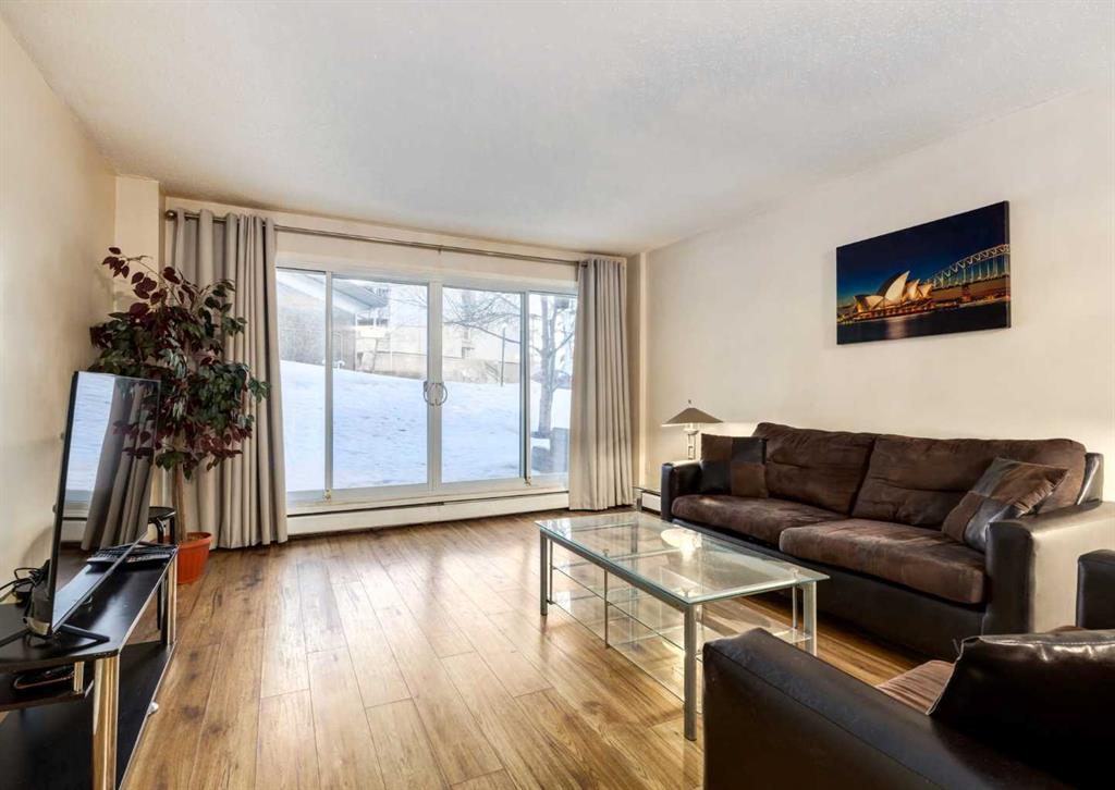 This large, spacious, and bright remodeled main floor unit with wide plank and tile flooring throughout, updated lighting and white cabinetry accented with dark features has modern appeal. The home is equipped with insuite laundry hook-ups. The open-concept layout seamlessly integrates the dining area with the living room, resulting in a vast, inviting space that is perfect for relaxation and entertaining. The kitchen has been updated with white cabinetry paired with dark countertops and is complemented by a white tile backsplash. Floor-to-ceiling vinyl windows and a sliding door allow abundant natural light to fill the home. With no neighboring units directly across, you can comfortably leave the curtains open. The generous primary suite is spacious enough to accommodate a king-size bedroom suite and includes a large closet. The four-piece bathroom has been remodeled, featuring a white vanity, dark countertop, and attractive décor tile in the shower. Install insuite laundry, or use the common laundry facilities on the second floor. The building provides both elevator and stair access for ease of movement. There is a wide array of amenities designed to enhance leisure and social activities. Enjoy the outdoor pool, sauna, recreation room with a billiard table, and tennis courts. Situated in a highly desirable location, the unit is within walking distance of Heritage LRT, local shops, and eateries. Glenmore Reservoir, Heritage Park, Glenmore Landing, and The Rockyview Hospital are just minutes away. Haysboro offers a quick commute to downtown and is connected to the city\'s pathway system. Affordable, convenient city living!