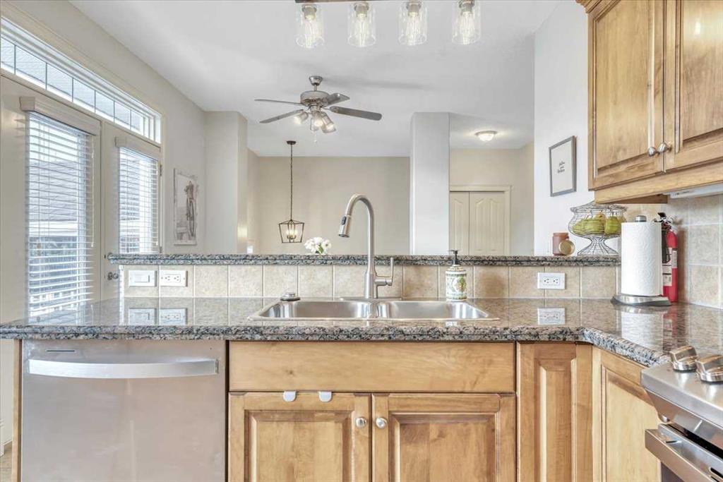 Welcome to Discovery Woods Villas! The peaceful and serene community that is surrounded by trees, walking paths and just minutes from Griffith Woods Park. This beautifully and tastefully updated and air-conditioned home is sure to impress any discerning buyer. As you enter the foyer, notice the high ceilings, vinyl plank flooring and spacious kitchen and dining area. The kitchen has ALL NEW APPLIANCES, granite countertops, tile flooring, updated and modern lighting above the breakfast bar, a pantry, and a patio to enjoy your morning coffee. Through the hallway is your main floor laundry and a nice size office with French doors. The living room has a cozy gas fireplace with a stylish mantel and allows for access to a second balcony on the main floor equipped with a gas hook-up. Make your way past the powder room (don’t miss the stylish wall treatment!) to the large primary bedroom with a walk-in closet, and updated ensuite with a walk-in shower. The fully finished lower level provides access to your double car garage and utility room with a newer hot water tank. There is also a family room with a second gas fireplace and WALK-OUT access to the patio and grass area. Down the hall is a full bathroom and second, generously sized bedroom. The added benefit of the walk-out lot is the huge windows in the family room and the bedroom. The location of this unit is truly perfect as the back patios face the green space where you are sheltered from any traffic noise. Discovery Woods Villas is a well-managed and well-maintained complex. There is no shortage of adventures to be had through the walking paths to gorgeous Griffith Woods Park and the Elbow River! Shopping and commuting are a breeze with easy access to Stoney Trail and Glenmore Trail. This home is not to be missed!