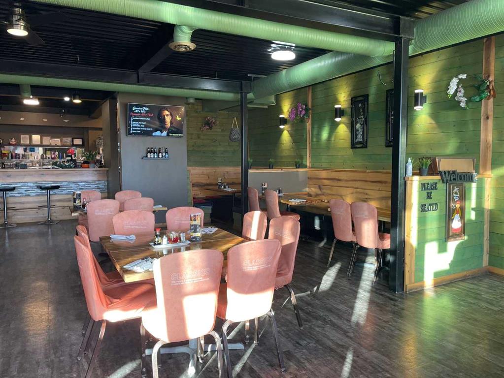 The large, open kitchen is designed for efficiency and visibility and comes fully equipped with all necessary commercial kitchen equipment, along with a walk in cooler and walk in freezer. An office space and generous storage area are located at the rear of the building, complete with an overhead door for easy deliveries and operations.