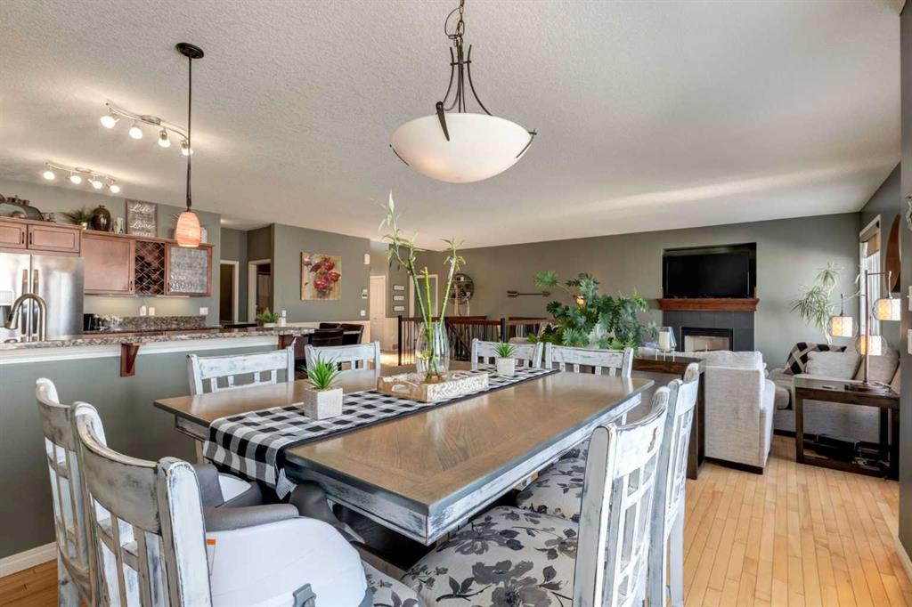 WALKOUT BUNGALOW on the GOLF COURSE!!!! Located perfectly on a quiet, family-friendly street and backing onto the Boulder Creek Golf Course, this home has it all. Pull up to this property and notice the beautifully landscaped property and your 3-CAR GARAGE! That pride of ownership carries into the house as you open the front door to stunning views of the golf course. The main level boasts an open concept, 9\' ceilings and hardwood floors and a spacious executive kitchen with a large, functional island complete with eating bar for 4, a corner pantry , stainless appliances and lots of functional cabinetry. The living area has large sun-soaked windows and a cozy fireplace perfect for those cold winter nights. The primary suite is spacious and boasts a 5 pc ensuite with granite countertops and a generous walk-in closet. Your main level is finished off with a 2nd Bedroom/Den/Gym, another 4 pc bath, a large mud room and upstairs laundry. The walk-out basement is well-appointed and is the entertainer\'s dream and perfect for all those family gatherings. Large rec room & TV area, a DREAM BAR/ENTERTAINMENT area, large 3rd & 4th Bedrooms and another triple-sided fireplace. Enjoy your summer nights in the backyard at the firepit or in the hot tub as you stare at the star or watch the golfer walk by. The DREAM TRIPLE GARAGE is heated with EPOXY floors, full dog run, LED exterior lighting. This property is a must-see and perfect place to call home in Langdon!!!!