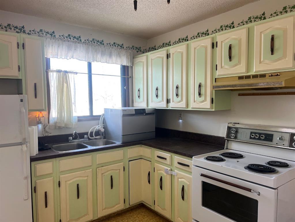 The main floor offers a functional layout with three bedrooms and a bright living room that has seen recent updates, including newer flooring and fresh paint. The kitchen and bathroom are serviceable but ready for a makeover, making this a great chance to update and add value over time.