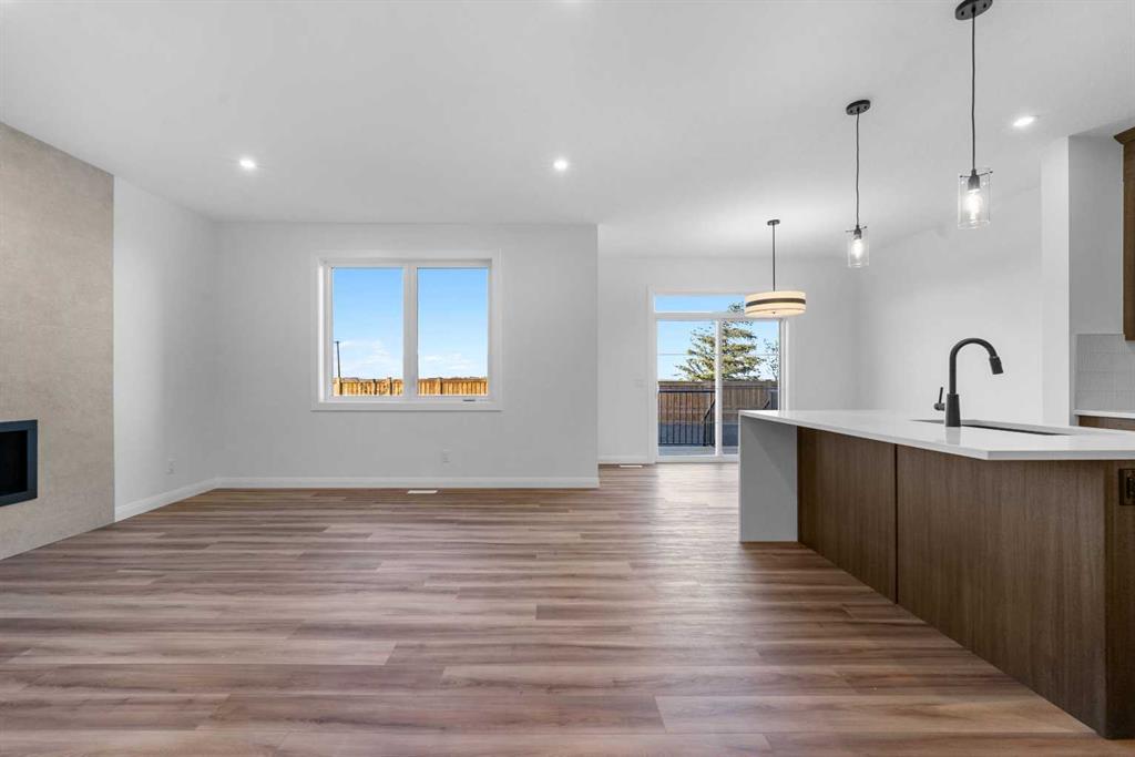 Welcome to The Meritt III, a beautifully crafted home by Broadview Homes, offering 2,087 sq. ft. of upscale, thoughtfully designed living space. With 3 bedrooms, 2.5 bathrooms, and a triple car garage, this home perfectly balances luxury and practicality for modern family life. Step inside through the stunning gel-stained fiberglass front door and be greeted by a light-filled, open-concept main floor. The chef-inspired kitchen is a showstopper with 42” upper cabinets complete with crown molding and soffit to the ceiling, soft-close doors and drawers, and a full suite of stainless steel appliances, including a built-in microwave and designer hood fan. A walkthrough pantry leads directly to the mudroom and interior garage access, making grocery runs effortless. The kitchen flows seamlessly into a spacious Great Room and dining nook, perfect for both entertaining and everyday living. Just outside, a rear deck invites you to extend your living space into the outdoors—ideal for summer evenings and weekend gatherings. Upstairs, you’ll find a large bonus room for family movie nights, a convenient laundry room with ample space for storage and organization, and two generous secondary bedrooms. The primary retreat is a serene escape, complete with a spa-inspired 5-piece ensuite featuring dual vanities, a soaking tub, tiled walk-in shower, and private water closet. The basement offers 9’ ceilings and a separate side entrance, providing incredible potential for future development or an income suite(with city approval). A 200 AMP electrical panel and 2-stage high-efficiency furnace ensure long-term performance and energy efficiency, while designer tile in the ensuite, main bath, and laundry adds a refined finish throughout. This is more than just a home—it’s your next chapter, elevated. Experience the unparalleled quality and style that only Broadview Homes can deliver. Schedule your private showing today—your dream home awaits
