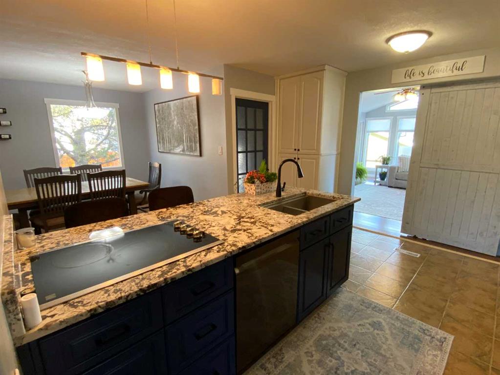 The tastefully updated kitchen is a standout, complete with matching appliances, an impressive seven-foot island-style worktop, and a seamless view into the dining area—perfect for entertaining or family gatherings. Just off the kitchen, the bright and spacious sunroom provides an inviting spot to enjoy your morning coffee or unwind at the end of the day.