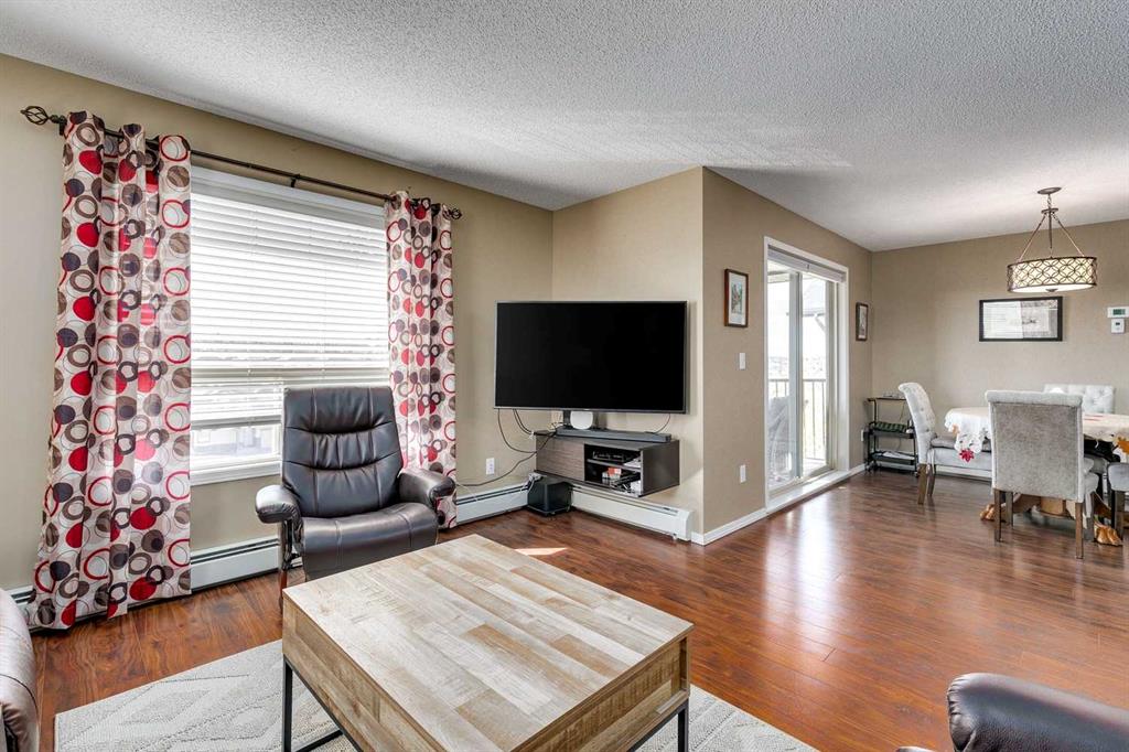 TOP FLOOR | CORNER UNIT | 2 TITLED PARKING STALLS | EXTRA-LARGE STORAGE UNIT | 1,184.80 SQ. FT. OF STYLISH LIVING. Sunlight fills every room of this beautifully designed top-floor corner unit, creating a bright and welcoming space you’ll love coming home to. Step onto your private balcony to enjoy peaceful mornings with coffee or take in the golden hues of the evening sky as the trees change color. Inside, the thoughtful layout offers 2 spacious bedrooms, 2 full bathrooms, and a dedicated office nook—perfect for working from home or keeping life organized. At the heart of the home is a gourmet kitchen that combines style and function, featuring rich granite countertops, stainless steel appliances, undermount lighting, a full pantry, and generous prep space. Whether you’re cooking a quick breakfast or hosting dinner with friends, this kitchen makes it easy to do it all with flair. Other highlights include gleaming laminate floors, attractive built-ins in every closet, and convenient in-suite laundry room with extra space for a stand up freezer. The primary suite offers a true retreat with a large walk-in closet and elegant ensuite, while the second bedroom and full bath are ideal for guests. Practical touches include easy access to the elevator, two titled, heated underground parking stalls—side by side and right next to the elevator—plus one of the largest storage units in the building. All utilities and the HOA fee are included in the condo fee, making for one simple monthly payment. Living here means enjoying everything Panorama Hills has to offer—endless pathways, parks, and playgrounds right outside your door. You’ll have access to the Panorama Hills Community Centre for year-round activities, and you’re just minutes from Country Hills Golf Club, Vivo Rec Centre, great schools, shopping, dining, and theatres.