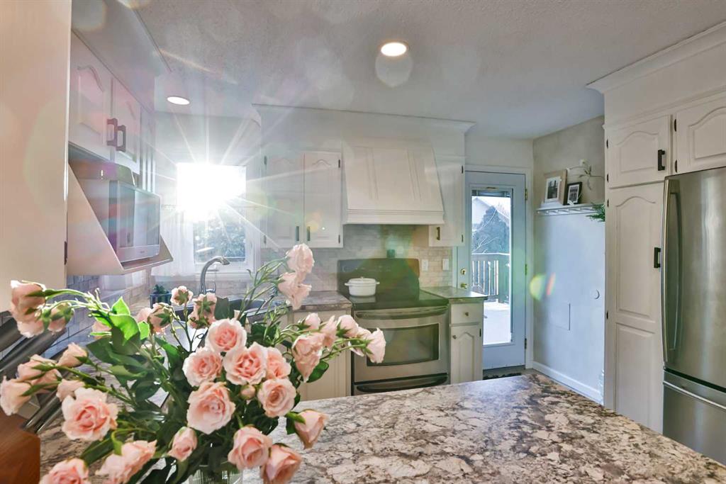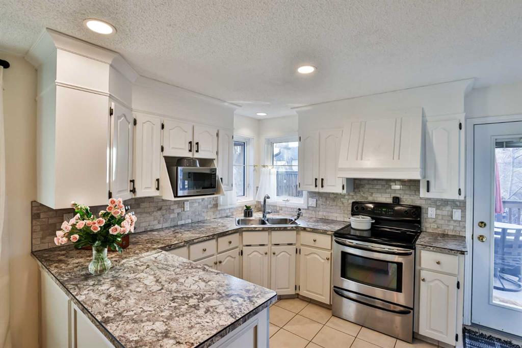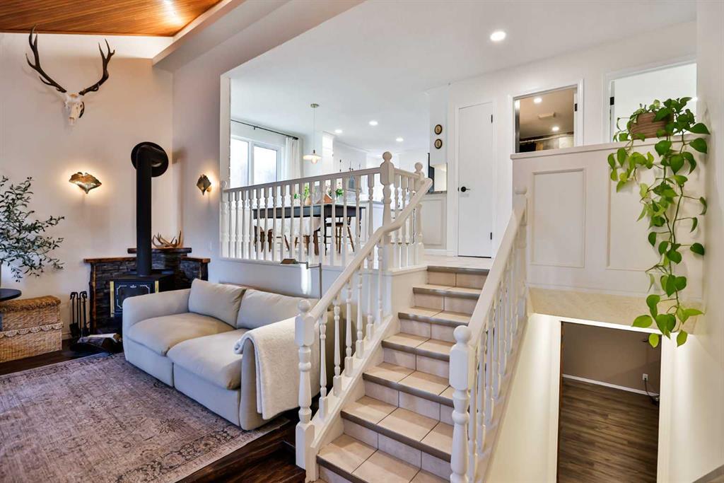 The cutest, most charming house on the block is officially for sale. You\'ll love this home from the moment you drive up. The brick detail on the front and the beautiful landscaping with sitting area sets the tone for the pile of thoughtful updates throughout this home. Through the front door you are greeted with the coziest living room with vaulted wood detail ceiling. The wood burning stove in the corner with stone surround elevates the cozy factor in this space even more. Up a few stairs you\'ll find the open concept dining room and kitchen, with fresh white paint throughout. There\'s plenty of cupboards, and nice upgrades to the cabinets like the glass inserts to display your favourite things. The primary bedroom is a fantastic size and easily fits a king size bed. You\'ll love the elevated wood detail wall treatment, and two great size closets as well! There is a pocket door that leads to the well maintained four piece bathroom. Another bedroom and a broom closet round off this floor. The basement features large windows throughout the large family room with nice wood bar. There is another darling bedroom, laundry space, a 3 piece bathroom, and more storage space than you could ever need! This family even uses it as the kids playroom which is just perfect. The single attached garage is heated, and you will absolutely LOVE the yard. Mature trees line all 3 sides of the lot, giving you great privacy. There is a fantastic, large, updated deck that even has a slide attached! Garden beds, a hot tub, and lovely detailed landscaping make this a space you\'ll love to spend time in. Located in the highly desirable established neighbourhood of Ridgewood, you\'ll absolutely love living here with plenty of parks, walking paths, and playgrounds close by. You\'re just a couple minutes drive to groceries, restaurants, pharmacies, schools, and so much more. Give your REALTOR® a call and come see this charmer before it\'s gone!