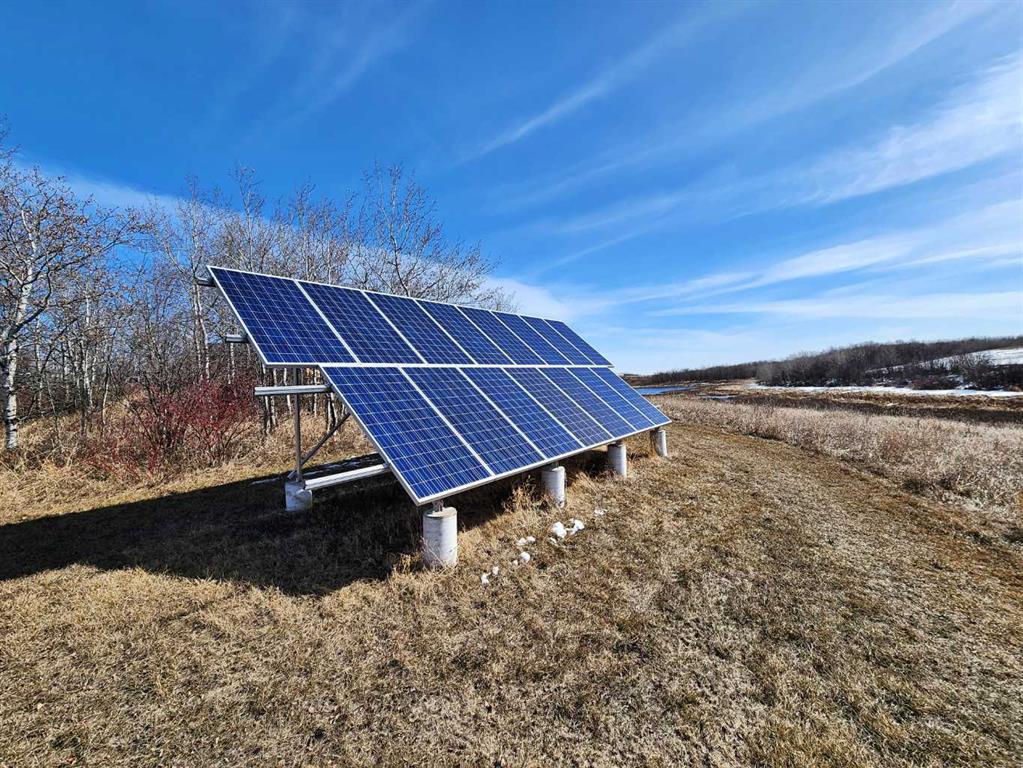 Outdoors, the yard site includes a mowed walking trail, secluded firepit area, ground-mounted solar array, a 200 sq ft multi-purpose/wood shed with additional solar panels, a smaller lean-to garden/wood shed, and young shelterbelt evergreens. A large, level area within the yard is ideal for a future shop. The surrounding woods feature multiple trails for walking or quadding, a spectacular toboggan hill, and a slough that attracts abundant wildlife and doubles as a classic outdoor hockey rink in winter.