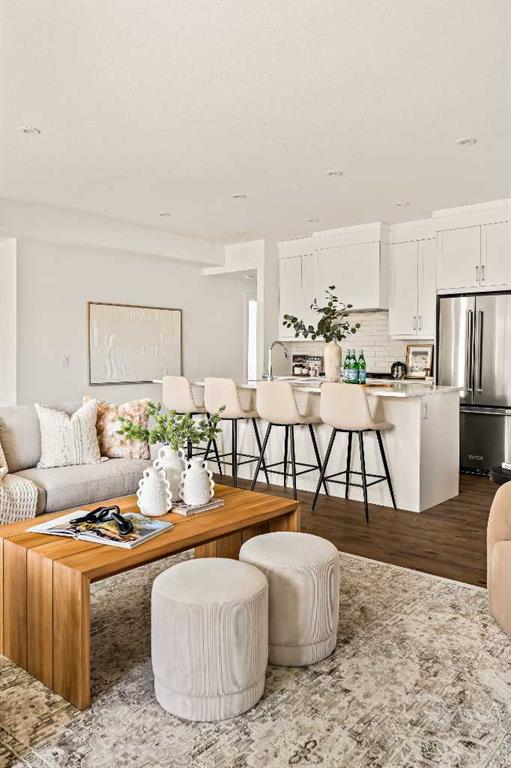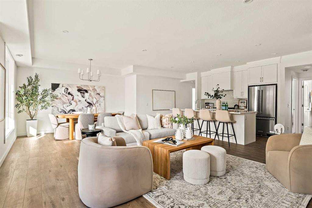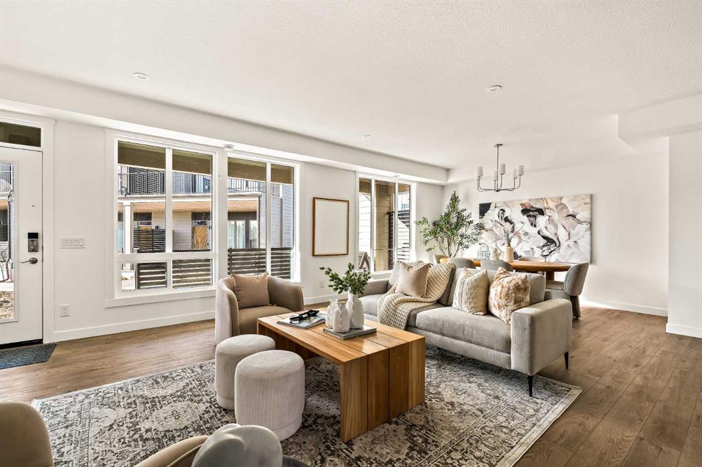 Welcome to the Regent at Crown Park - a thoughtfully designed townhouse that offers single-level bungalow style living without compromise. Designed with down-sizers in mind, this maintenance-free townhouse combines a bungalow lifestyle with a double attached garage - all while giving you a maintenance-free lifestyle, perfect for those who travel, or simply just don\'t want the hassle of exterior maintenance, landscaping or snow removal! This brand new 3 bedroom, 2 bathroom townhome has nearly 1,300 ft2 of living space over one level and a lower level with virtually endless storage and a private double attached garage! The brilliantly designed living area was created for entertainment with a central kitchen that opens to the living and dining areas with a wall of windows that flood the space with natural light. The timeless kitchen has white shaker cabinets, light quartz countertops and a suite of built-in appliances including a chimney hood fan, gas cooktop and built-in oven. The sprawling kitchen overlooks both the living and dining areas, ensuring the chef is never left out. A central fireplace with floor-to-ceiling plaster finish anchors the main living area with ample space for 6 to sit comfortably. The large dining area has space for a table and buffet if desired, providing flexible furnishing options to meet your needs. The primary suite is located at the back of the home and features a large walk-in closet and spa-inspired ensuite with dual sinks and a tiled walk-in shower. The centrally located laundry room, complete with upper cabinetry and a countertop for added convenience, perfectly separates the primary suite from secondary rooms for optimal privacy. Two additional bedrooms and a full bathroom round out this expansive single-level living space. The secondary rooms provide added flexibility for a guest room(s), home office, media room or studio space - while keeping a broad appeal for resale value. The lower level has a large storage room and oversized utility room (~17\'x7\') that could easily be used for a hobby space. An oversized double attached garage completes the interior of the home. Lastly, a large covered southwest-facing patio, spanning over 26\' wide, provides the perfect outdoor living space with views overlooking the park and is complete with a gas line and hose bib for added convenience to everyday living. A bungalow style townhouse with a double attached garage is an exceptionally rare find - don\'t let this opportunity pass by. Purchase with peace of mind - this brand new home includes a comprehensive builder warranty + Alberta New Home Warranty. Located just minutes from downtown, countless amenities and in an established and developed area, you can move into your new home with confidence - knowing all that is around your beautiful new home.