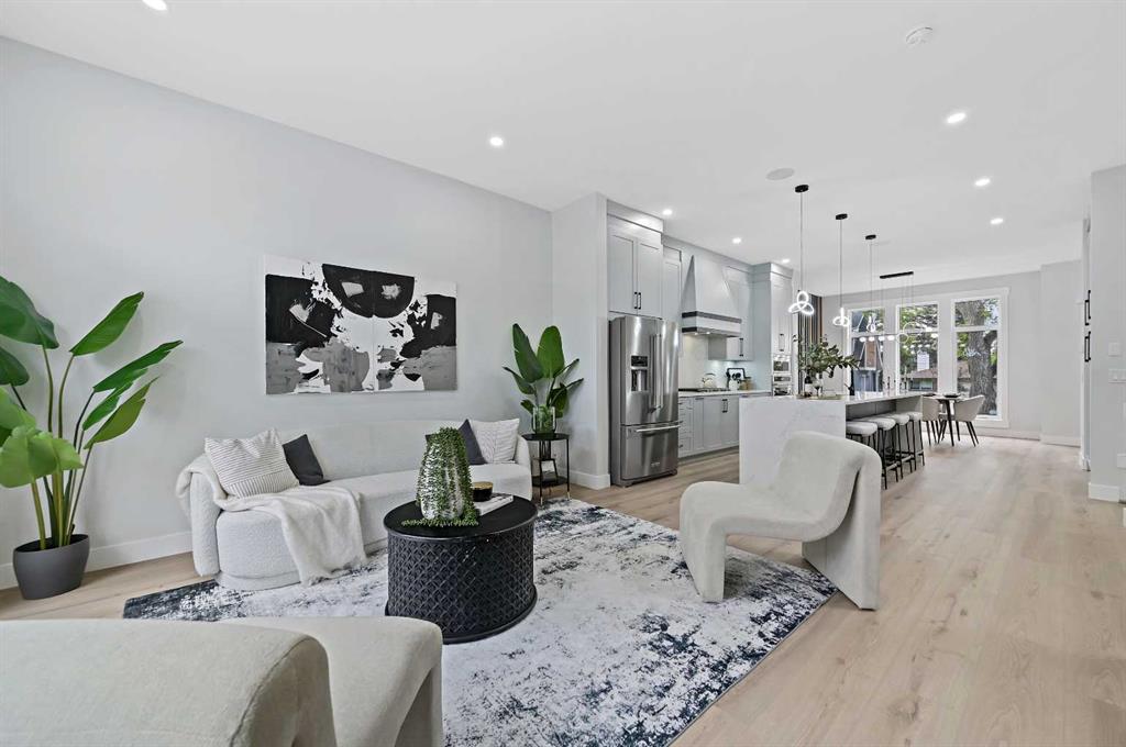 Welcome to 107 Hartford Road NW – a stunning brand-new executive home offering over 2,800 sq ft of beautifully designed living space in the heart of Highwood. Set on a quiet, tree-lined street, this two-storey modern masterpiece boasts exceptional curb appeal with stone, Hardie siding, and Smartboard accents. Step inside to discover a very bright and open floorplan with extensive upgrades throughout—a home that truly must be seen to fully appreciate the quality craftsmanship and detailed finishes that went into this custom build. The main level features 10’ ceilings, a dedicated study/work desk, a spacious dining area, and a dream kitchen with a quartz waterfall island, KitchenAid built-in appliances, a 36” gas cooktop, and designer finishes throughout. The cozy living area includes a dramatic tiled fireplace wall and opens via a sliding patio door to your fully landscaped yard—perfect for summer entertaining.