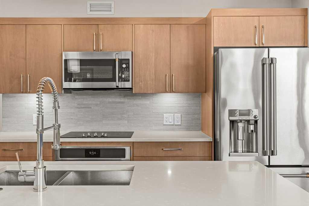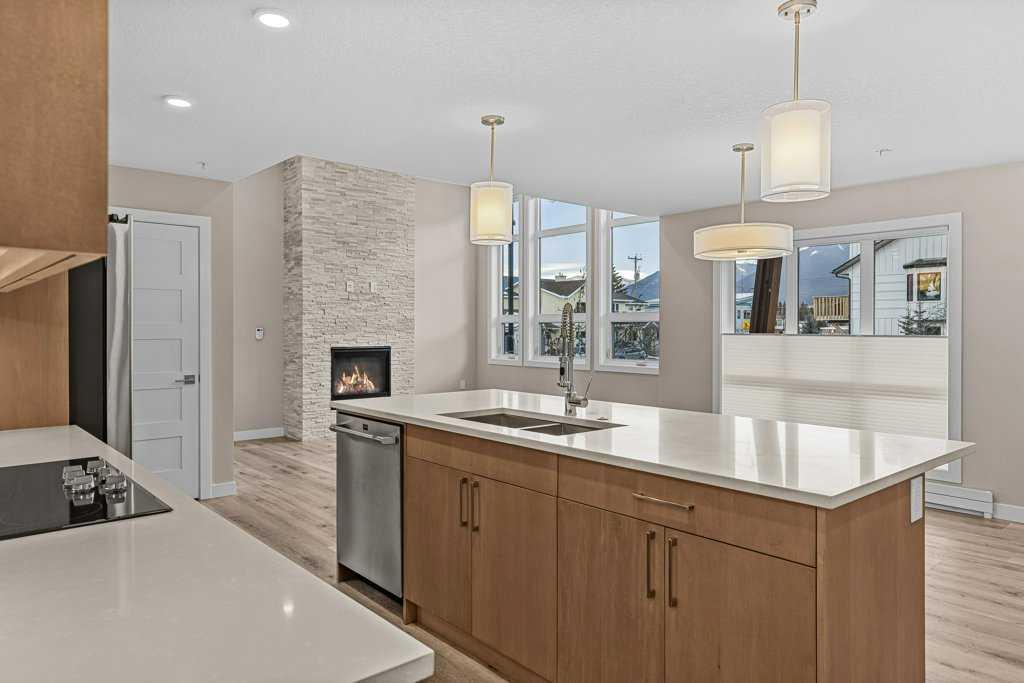 Welcome to the coveted Residence at 7th & 7th! This stunning one-bedroom condo is located just one block from Main Street, offering easy access to shops, galleries, restaurants, and pubs. This beautifully designed home features vaulted ceilings and expansive south-facing windows that flood the space with natural light and showcase outstanding mountain views. Wake up to views of the iconic Three Sisters! The open-concept layout includes a spacious great room with a stylish kitchen complete with quartz countertops, pantry, and upgraded GE Café appliances—plus the convenience of remote oven start for busy days. The condo offers two private entrances: one from the interior courtyard and another from your own balcony overlooking 7th Street. You can be out on the trails or down to the river in seconds!! Ideal for the career professional, working remote, or those that desire a mountain lifestyle. Additional highlights include titled underground parking and a dedicated storage area. A perfect blend of comfort, convenience, and mountain lifestyle living.
