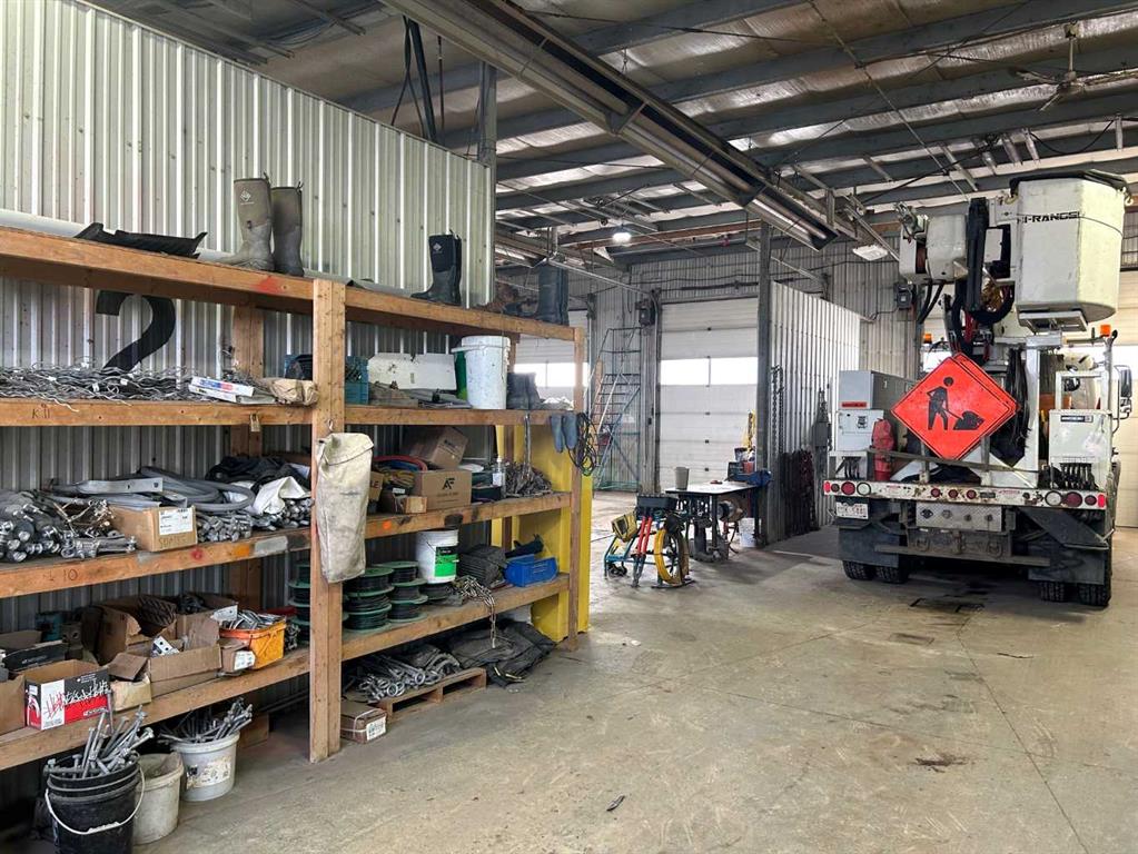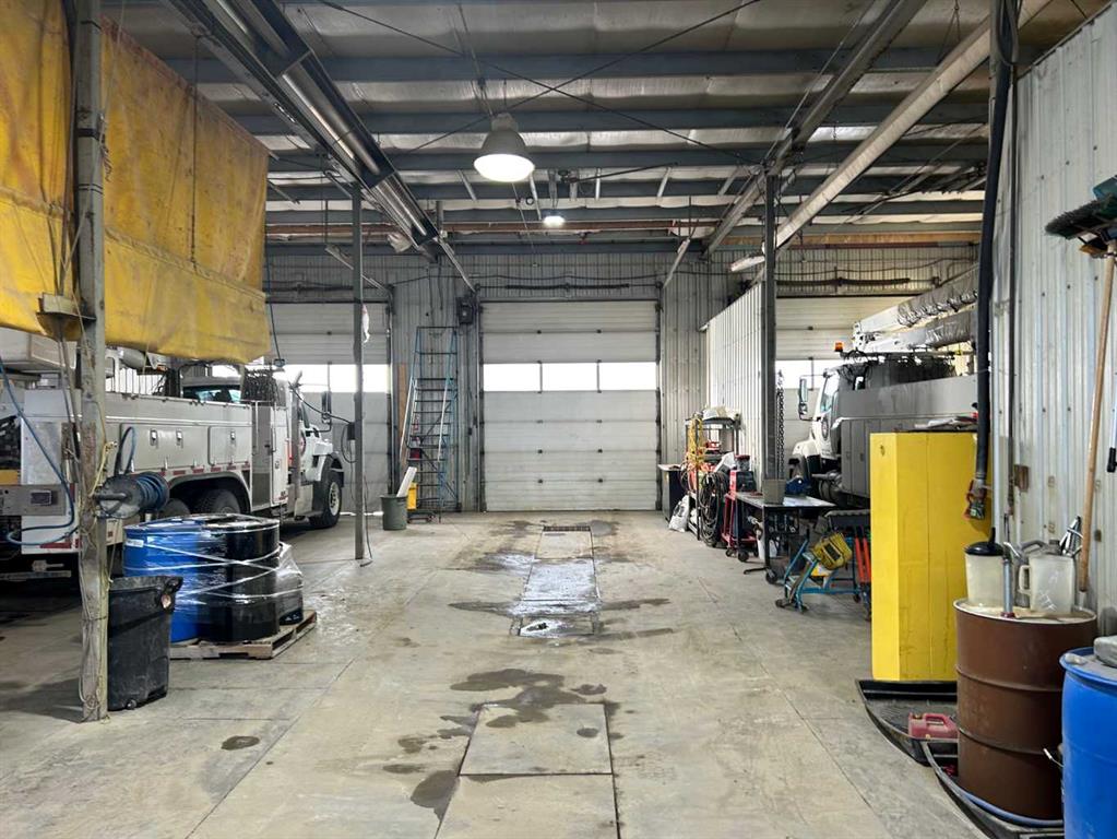 FOR SALE : 1.4 ACRES with a 4200 SQ FT Steel Structure building.... Fully Leased. Property FEATURES 6 - 14 ft Overhead doors allows trucks to drive through ; 3 bays each 60 ft deep ; originally the building was used as a truck and car wash ; ideal site for a potential second building, subdivision of a second lot [subject to town of High River approval ];fenced yard ; gravel packed rear yard ,security fenced and good highway access. New Air Exchange system installed in 2025.