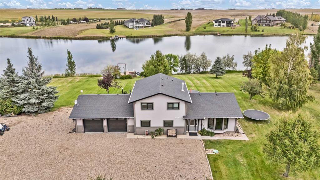 Live the Lake Life: Step out your back door and onto your private dock—complete with a swimming ladder and a lake stocked with fish, ready for your boat, paddleboard, or lazy afternoon swim. Whether you’re an early-morning angler or sunset cruiser, this is the waterfront oasis you’ve been waiting for. Room for All Your Passions: A massive 36’ x 66’ heated shop with a mezzanine is every hobbyist’s dream—ideal for your toys, tools, projects, or even a home business. There’s space for boats, RVs, and more, so your adventures don’t have to end at the shoreline. A Home Built for Family & Entertaining: Inside, you’ll find a welcoming, open-concept kitchen designed for gathering and celebrating, with plenty of space for friends and family to connect. The expansive master bedroom is your personal retreat, offering breathtaking lake views and a private ensuite. Upstairs, two additional bedrooms and a main bath provide comfort for kids or guests, while the main floor offers a convenient laundry room and another bedroom—perfect for flexible living arrangements. Designed for Living Well: Custom built-in desk area off the living room—ideal for remote work or homework. Cozy gas fireplace for those chilly Alberta evenings, Basement family room and bedroom for movie nights, playdates, or guest stays. Outdoor playground for the kids, so adventure is always just steps away, Reliable water co-op supply for peace of mind
