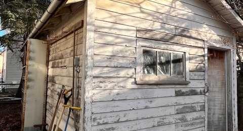 Unique Property!! Attention business owners and developers!! One of a kind DOUBLE LOT on main street. Residential Mixed Use Zoning allows for many different businesses and possibilities. Back alley access!! Original home built in 1946 with total of 4 bedrooms, full piece bathroom, utility room, cold room, dining room with loads of light and a large living room with wood burning fireplace. The substantial yard includes; gardens, sheds, heated shop, double detached garage, and room for lots of parking if needed. Don’t wait on this one!!