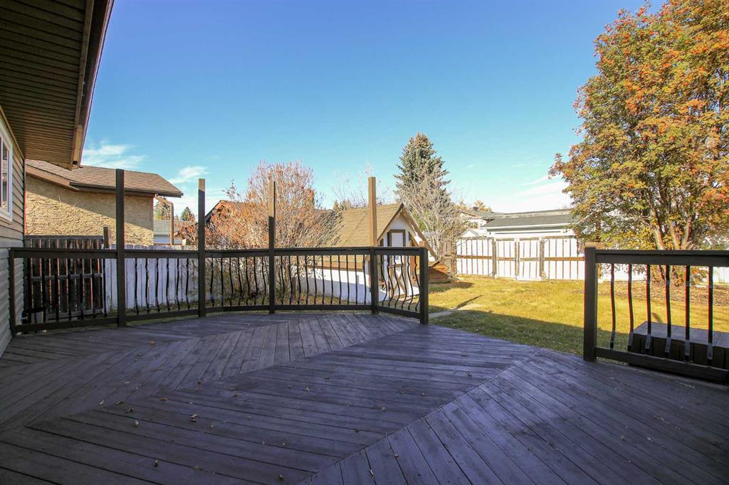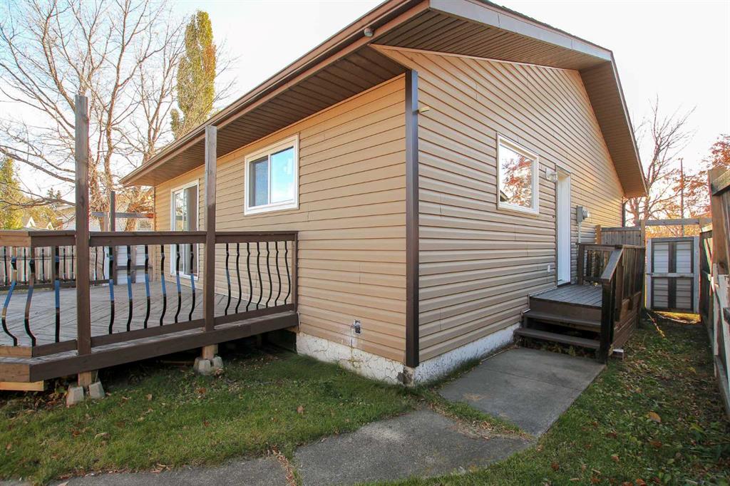 IMMEDIATE POSSESSION AVAILABLE ~ FULLY DEVELOPED 4 BEDROOM, 2 BATH BUNGALOW IN EASTVIEW ESTATES ~ LOCATED NEXT TO A WALKING, BACKING ON TO A PARK & PLAYGROUND ~ OVERSIZED FRONT DRIVE + REAR RV GATE ~ Just completed updates include; New vinyl windows, appliances, paint, lighting and flooring ~ Bright entry welcomes you to this recently updated home ~ The spacious living room is filled with natural light and offers sliding patio doors that lead to the deck and backyard ~ The updated kitchen offers a functional layout with ample counter and cabinet space, including a built in pantry, full tile backsplash, brand new stainless steel appliances, window above the sink and plenty of space for a large dining set ~ Separate entry just off the kitchen has built in cabinets and access to the backyard ~ The primary bedroom can easily accommodate a king size bed plus furniture and has ample closet space ~ 2 additional main floor bedrooms are located across from the oversized 4 piece bathroom ~ The fully finished basement has a large family room with built in shelving and storage ~ 4th bedroom has cheater door with easy access to the 3 piece bathroom that offers a walk in shower and linen closet ~ Laundry room with space for storage ~ The fully fenced backyard is landscaped with mature trees, shrubs and perennials, has a fire pit and includes 2 sheds ~ RV gate with access to the back alley ~ Walking trail on the side of the house leads to a playground just behind, with multiple other parks, playgrounds, green spaces and walking trails close by ~ Easy access to schools, shopping and all other amenities ~ Immediate possession and move in ready!