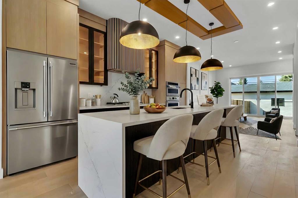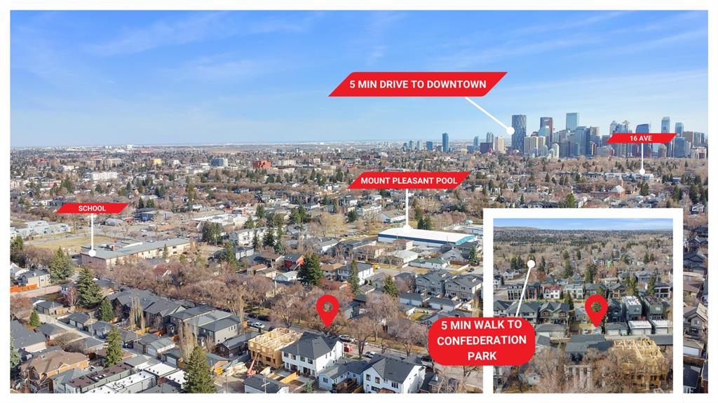Two additional bedrooms each feature walk in closets and share a beautifully finished four piece bathroom. The upper laundry room includes LG appliances, folding counter, deep sink, cabinetry, and linen storage conveniently located near the bedrooms. The fully finished two bedroom legal basement suite (pending final inspection), includes a private side entrance and mirrors the quality of the main home. It offers a full kitchen, spacious living area, modern four piece bathroom, and dedicated laundry with a built in sink, making it ideal for extended family, guests, or future rental income. Finished with a detached double garage and paved alley access, this home is surrounded by top rated schools, parks, Mount Pleasant Pool, and everyday amenities, with quick access to major routes and the city core. A rare opportunity to own a truly refined, brand new luxury residence in one of Calgary’s most sought after communities.