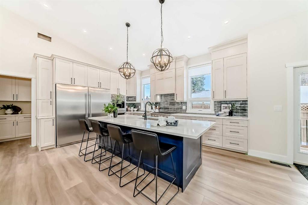 OPEN HOUSE FEBRUARY 7, 1-4 This beautiful home was completely rebuilt walls and new roof trusses to including additions to the main and upper levels. Now 3300 sq feet on three levels plus basement. 10 foot ceilings on the main floor 15 foot peak vaulted ceiling plus numerous windows allowing natural light to filter throughout the great room. The chef\'s kitchen is the hub of the home and features a large eat up island that seats 6, double door professional fridge/freezer, 6 burner gas cooktop, 2 dishwashers, double ovens and quartz counters. The large walk-in pantry/mudroom is steps from the kitchen and is complete with tons of storage and closets. Step into the sunny west side yard via the garden doors, where you will find a perfect space to BBQ and dine al fresco on the private patio just steps from the large sunny yard. This huge pie lot extends west to the fence. The yard also features a double gate and gravel pad allowing for RV parking, or would make a great space for a dog run or outdoor storage. Upstairs is the Owner\'s suite, with a generous bedroom, custom walk in closet with built in drawers, a 5 pc ensuite with soaker tub , shower and Japanese style high end toilet, as well as an additional closet/vanity area. The two additional bedrooms on this level are bright with oversized windows, and share access to the main bathroom. One bedroom features a door directly into the main bath. The oversized laundry room has ample cabinetry side by side washer/dryer, sink and space to hang dry. The inviting third level offers a cozy family room complete with an electric fireplace and bar, an additional guest bedroom or den. Garden doors on this level lead you to the amazing 4 season sunroom. This large 12x34 ft room features windows all around, 3/4 inch rubber flooring and is fully heated. This room is the ideal space for a games room, gym or quiet sitting room overlooking the large sunny yard. Downstairs on the 4th is an additional space for a media room, kids play space, gym or office and also features a 3 pc bathroom and tons of storage. High end 10 inch wide plank vinyl flooring runs throughout the home with dry core insulated boards on the concrete third and fourth levels. All new mechanicals, including AC, new underground plumbing with backflow valve, new electrical panels with second one in garage with 220 plug and new garage heater. Exterior is completer with all new James Hardie boards, new asphalt singles 2025, new landscaping and trees planted. Front walk and driveway were done by Urban Rubber a wonderful no slip surface and so easy to shovel. Drone video and picture gallery of the transformation in supplements. Beautifully treed and private crescent, close to schools, shops and Edworthy Park.
