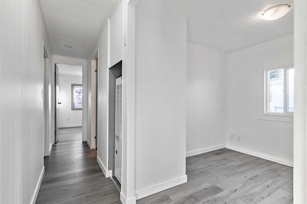 Welcome to Trails West Mobile Home Park located in the lovely community of Diamond Valley! This affordable mobile home is cute as a button and has just been renovated with a fabulous new kitchen, brand new flooring through out the unit, some windows have been replaced, new light fixtures, renovated 4-piece bathroom with laundry hook ups, and every room has been freshly painted. The furnace was replaced in 2021, and the roof shingles were replaced in 2018. There is a covered front porch leading to the generous heated addition that has also been renovated and freshly painted. The main bedroom is located at the rear of the mobile and there are 2 rooms that could possibly be used as bedrooms if a door and closet were added. The lovely private yard is fully fenced and has a newer Costco shed. Located in walking distance to stores, restaurants, hospital, medical clinic, schools and most other amenities. Move in and enjoy this move in ready home with affordable pad rent of $550 per month, which includes water, sewer, and garbage collection.