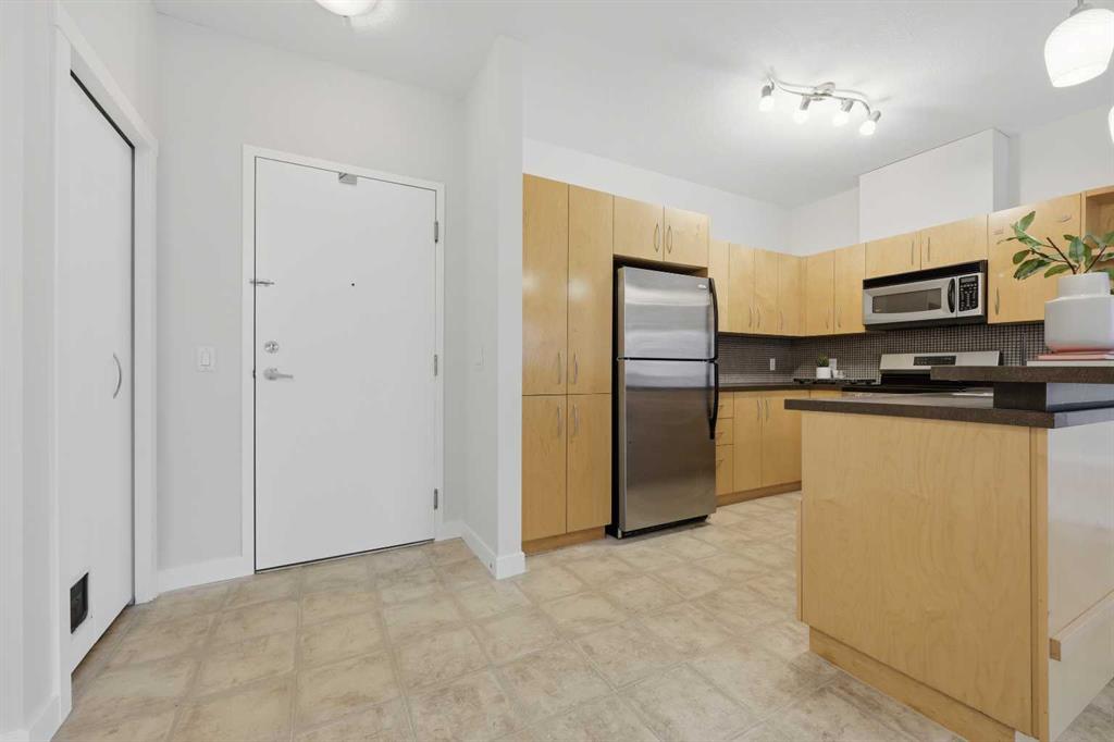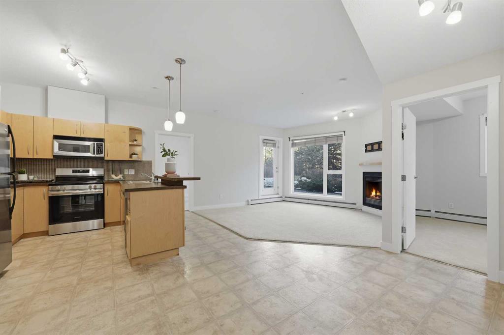 *OPEN HOUSE SATURDAY, JAN 24, 12:00 - 2:00 PM* Welcome to this bright and spacious 2 bedroom, 2 bathroom ground-floor unit in an unbeatable location. Offering 816 square feet of well-designed living space, the home features a smart split-bedroom layout—placing bedrooms on opposite sides of the unit for privacy, making it perfect for roommates, guests, or families. Step directly onto your private patio with a gas hookup, overlooking lush green space and a walking path—an ideal setup for dog owners or anyone who appreciates easy outdoor access. Inside, the home is truly move-in ready featuring professionally-installed, brand new shower fixtures, a fresh coat of paint throughout and brand-new stainless steel dishwasher and electric range. The sun-filled living area with a cozy gas fireplace is designed for entertaining with a dedicated dining area and a breakfast bar for casual meals with friends and family. You are well positioned just steps from the Westside Recreation Centre, home to swimming pools, skating rinks, a fitness centre, and an indoor track. The location is incredibly walkable, situated near 69th St LRT Station for an easy commute, Ernest Manning High School, Ambrose College and Springborough Professional Centre featuring local favourites like Waves Coffee, an award-winning yoga studio, and diverse dining options. Rounding out this exceptional package is a heated underground parking stall conveniently located near the elevator, along with a separate storage locker, bicycle storage, access to an underground car wash, and ample visitor parking.